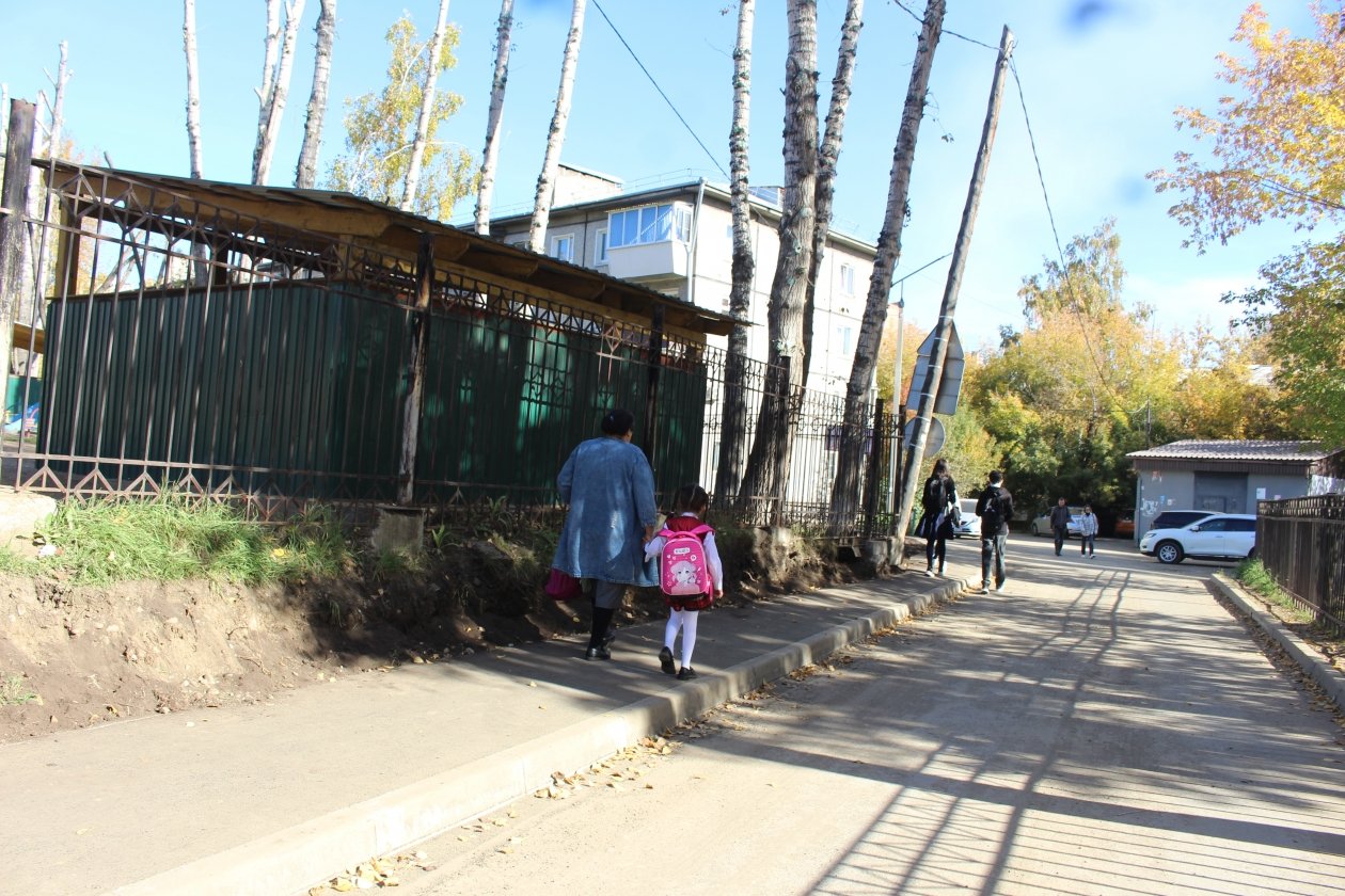 Перед интервью корреспондент прошел по округу, в том числе по некоторым территориям благоустройства. Так, возле детского сада №142 была сделана дорожка. По словам помощницы Евгения Владимировича, раньше вместо дорожки на этом месте просто была сплошная грязь, и дети ходили в резиновых сапогах, чтобы пройти этот участок. У школы №5 также был сделан тротуар — до этого школьники просто ходили по проезжей части.
