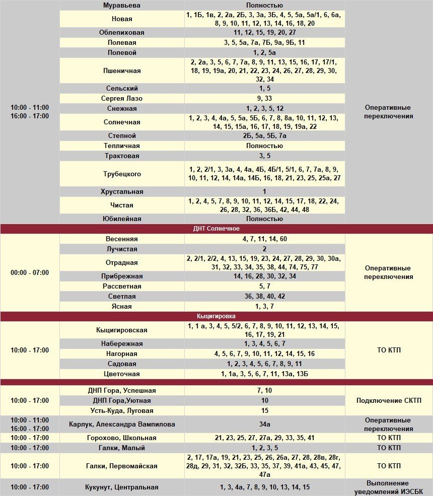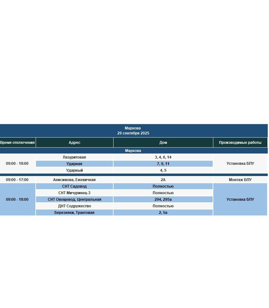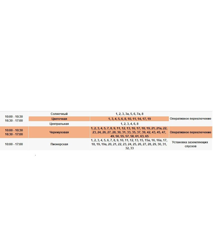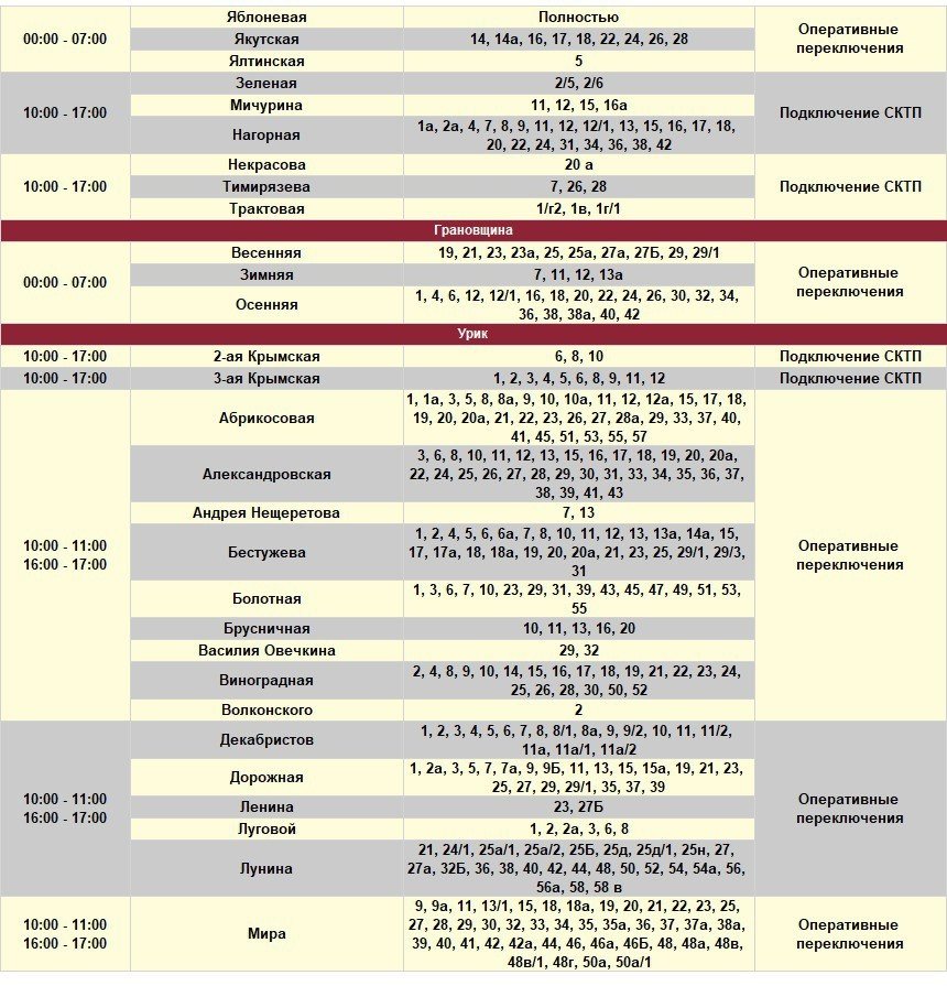 Ранее агентство сообщало об отключении электроэнергии в рабочем посёлке Марково. Без электроэнергии оставались улицы: 3-й Сосновый, 5-й Сосновый, Абрикосовая, Березовая, Васильковая, Весенняя, Кленовая, Лимонная, Нагорная, Напольная, Первостроителей, Пшеничный, Родниковая, Ромашка, Сибирская, Снежная, Солнечная, Сосновая, Средний, Средняя, Тепличная, Трактовая, Цветочная, Южная, Яблоневая, Ягодная, а также часть домов в микрорайоне Анисимова