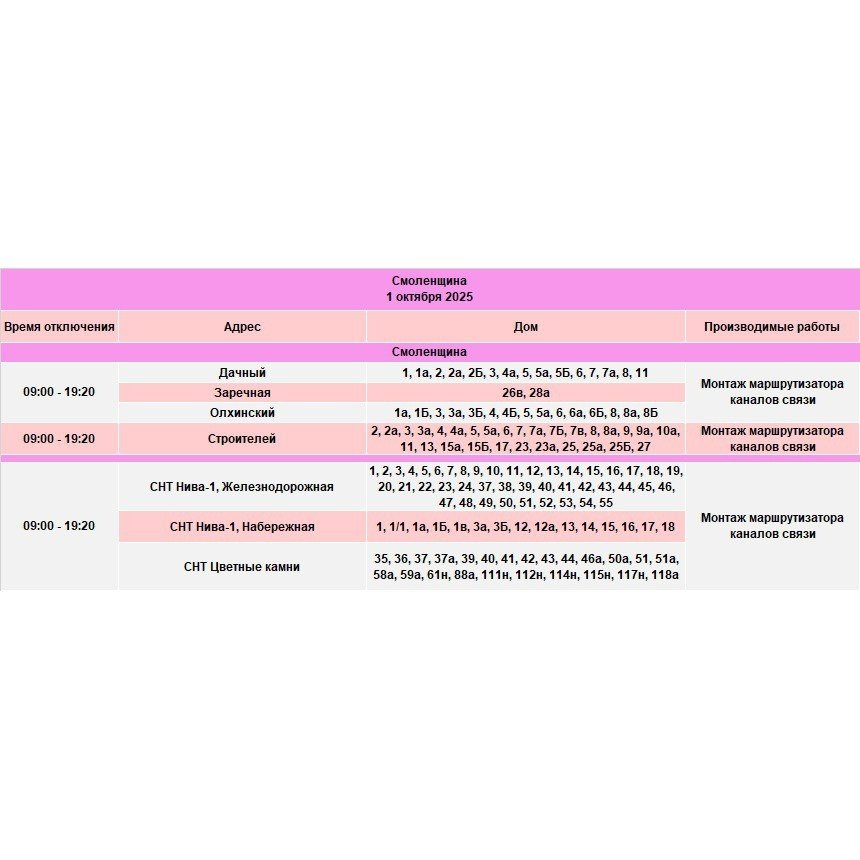 Меры введены в связи с выполнением плановых работ (АДРЕСА)