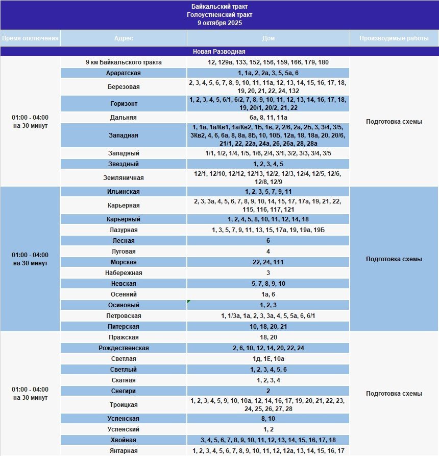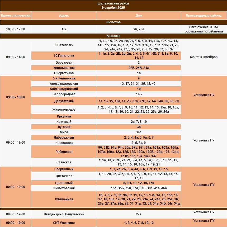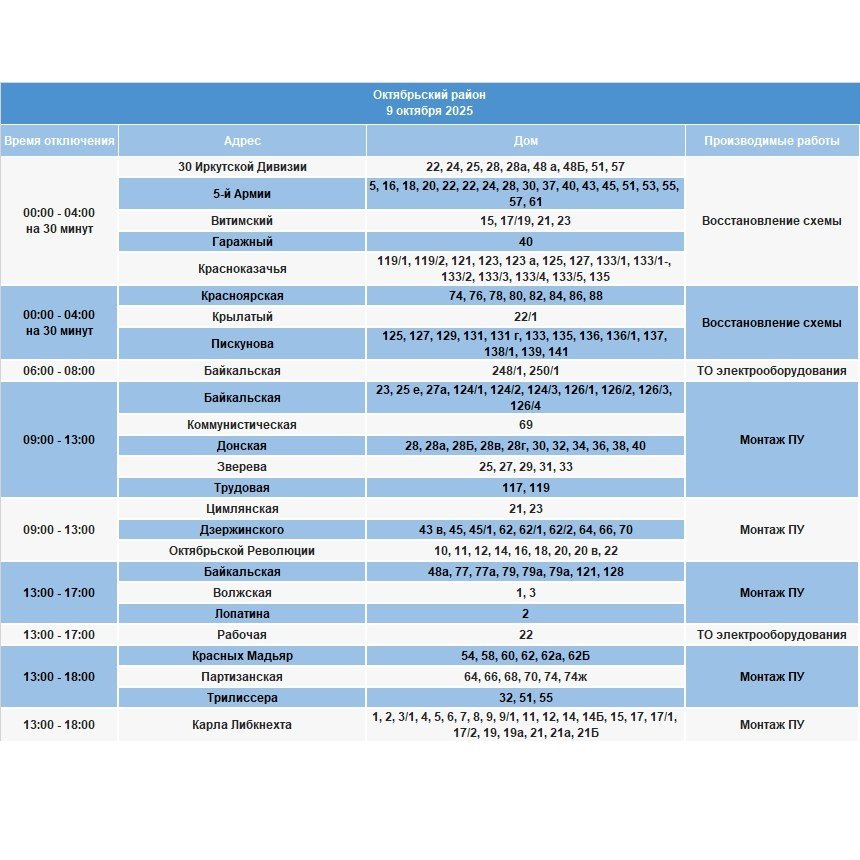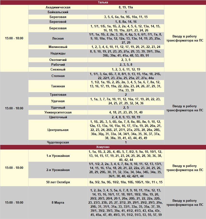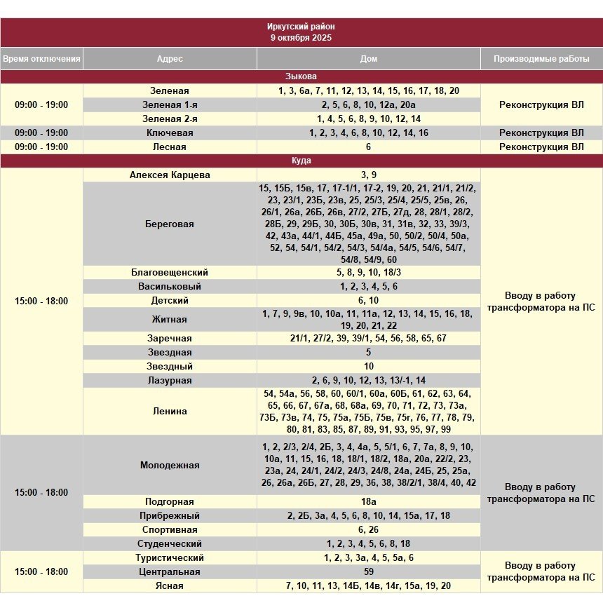 Под отключение попадут часть домов в Иркутске, рабочем посёлке Маркова, в Смоленщине, Иркутском и Шелеховском районах.