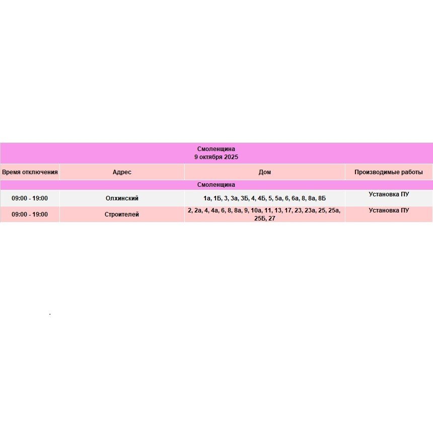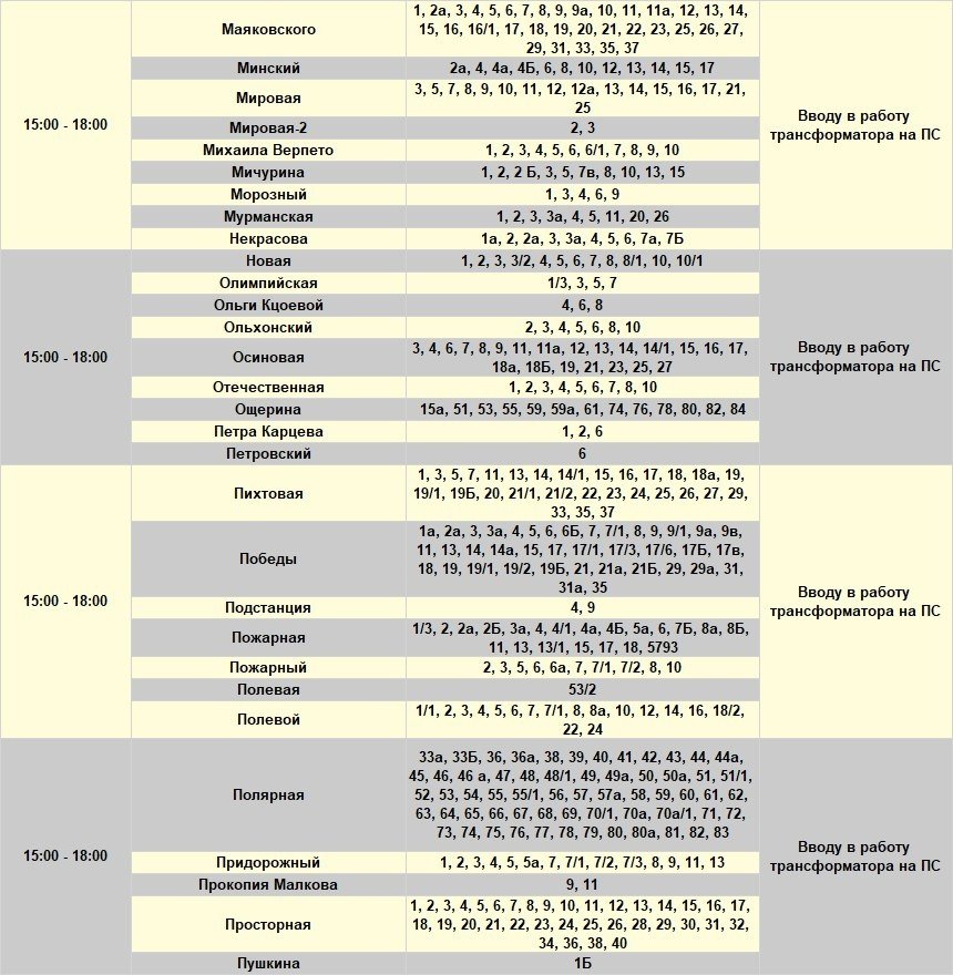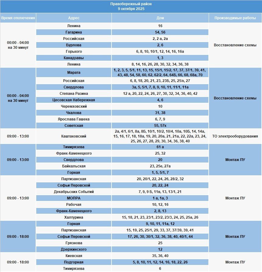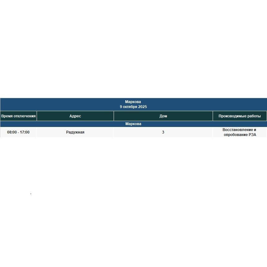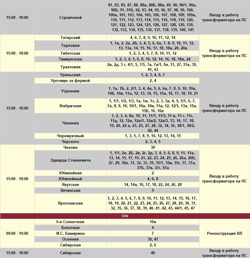 Под отключение попадут часть домов в Иркутске, рабочем посёлке Маркова, в Смоленщине, Иркутском и Шелеховском районах.