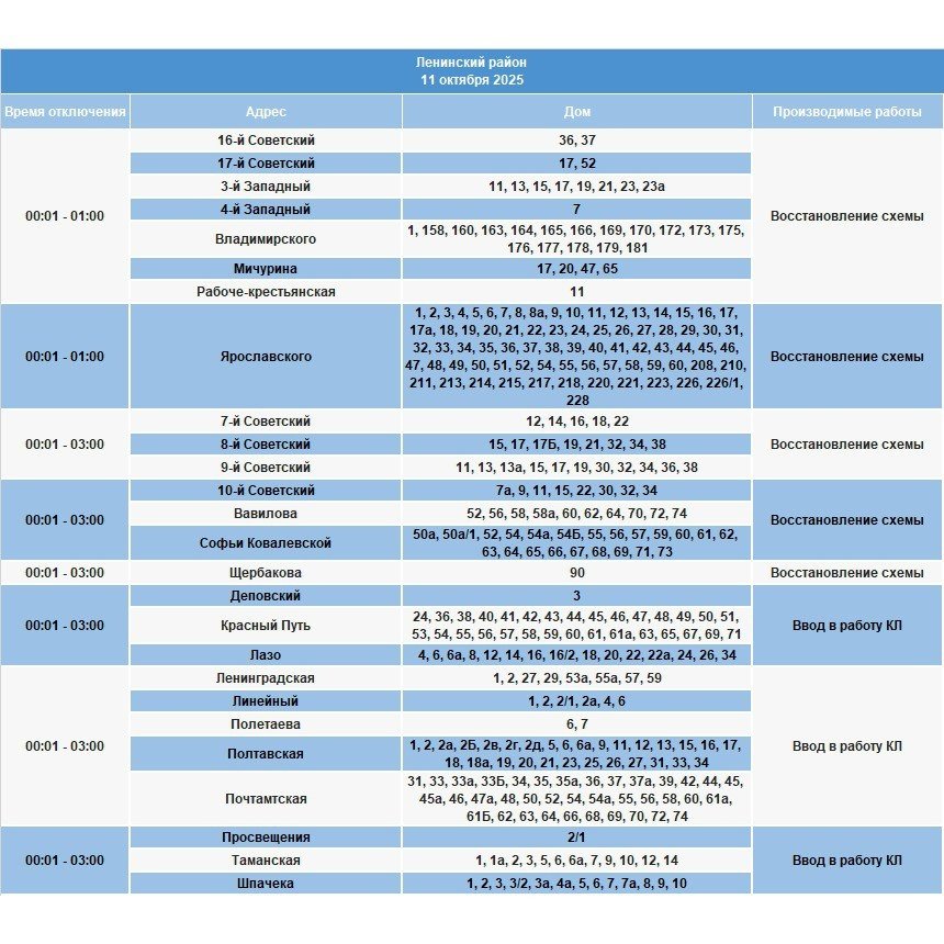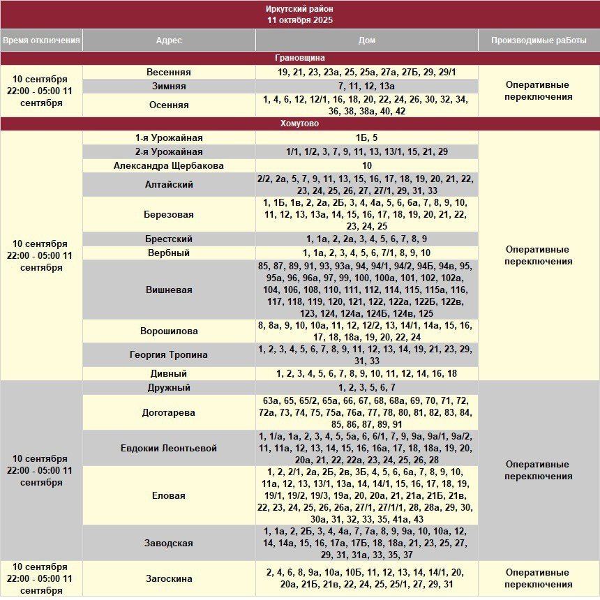 11 октября в Иркутской области частично ограничат электроснабжение. Меры будут приняты для проведения плановых работ на электросетях, пишет ИА IrkutskMedia со ссылкой на тг-канал "СВЕТ38" (18+).