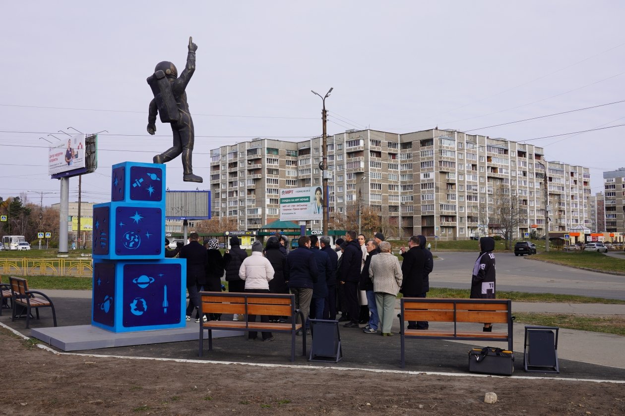 Первой точкой маршрута стал Ангарский городской округ, где в этом году реализуется 21 проект в рамках инициативного бюджетирования. Один из них — сквер Космонавтики, созданный по предложению горожан. Среди аккуратно выложенных дорожек теперь возвышается фигура космонавта в скафандре — символ устремлённости к новым высотам. Сквер украшен шарообразными светильниками, удобными антивандальными скамейками.
