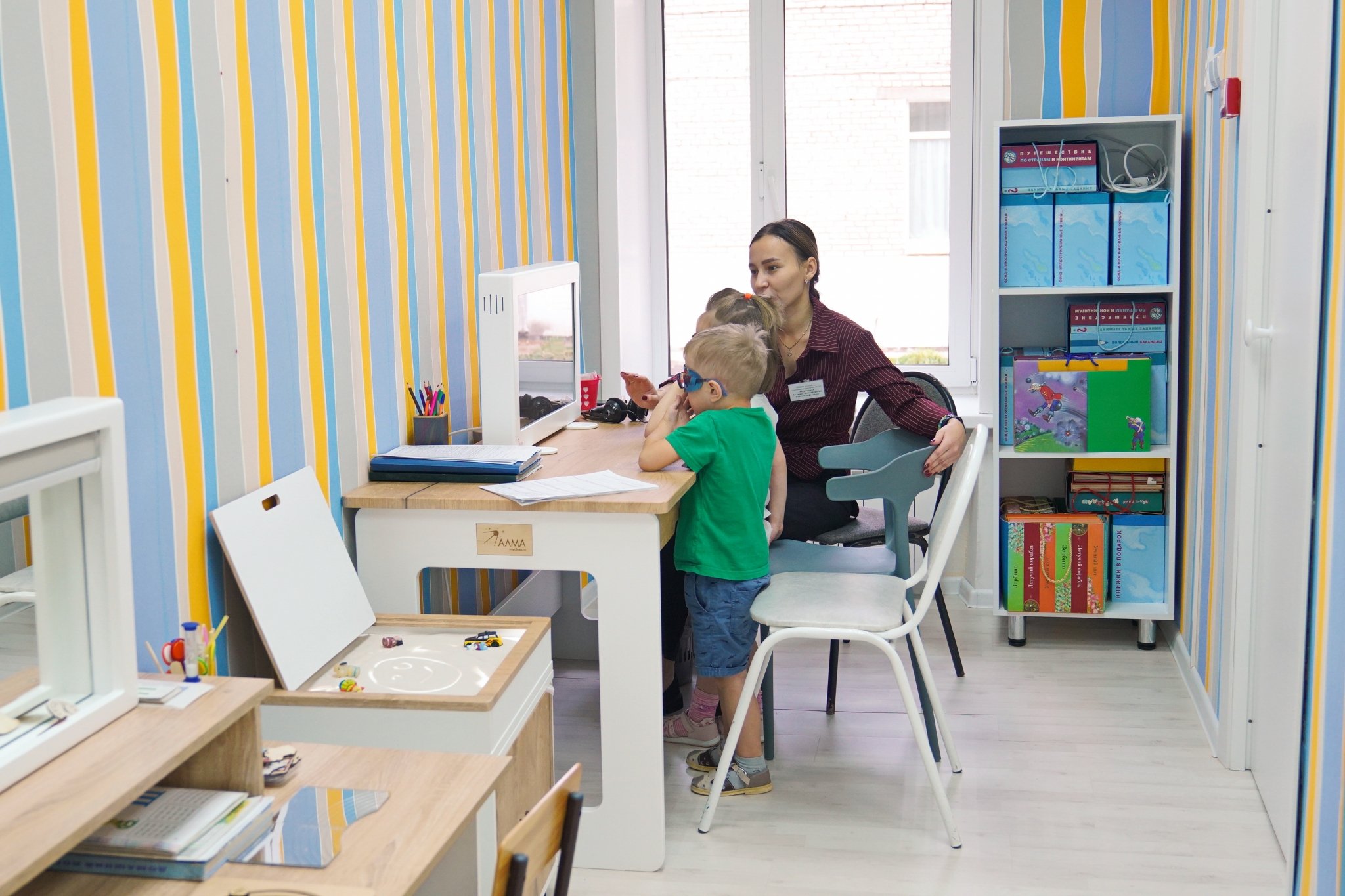 Не менее значимый объект — реабилитационная площадка "Мир глазами особых детей" в детском саду №105. Здесь, в результате победы в конкурсе "Есть Решение", оборудовали комнаты с современными офтальмологическими, логопедическими и дефектологическими приборами.