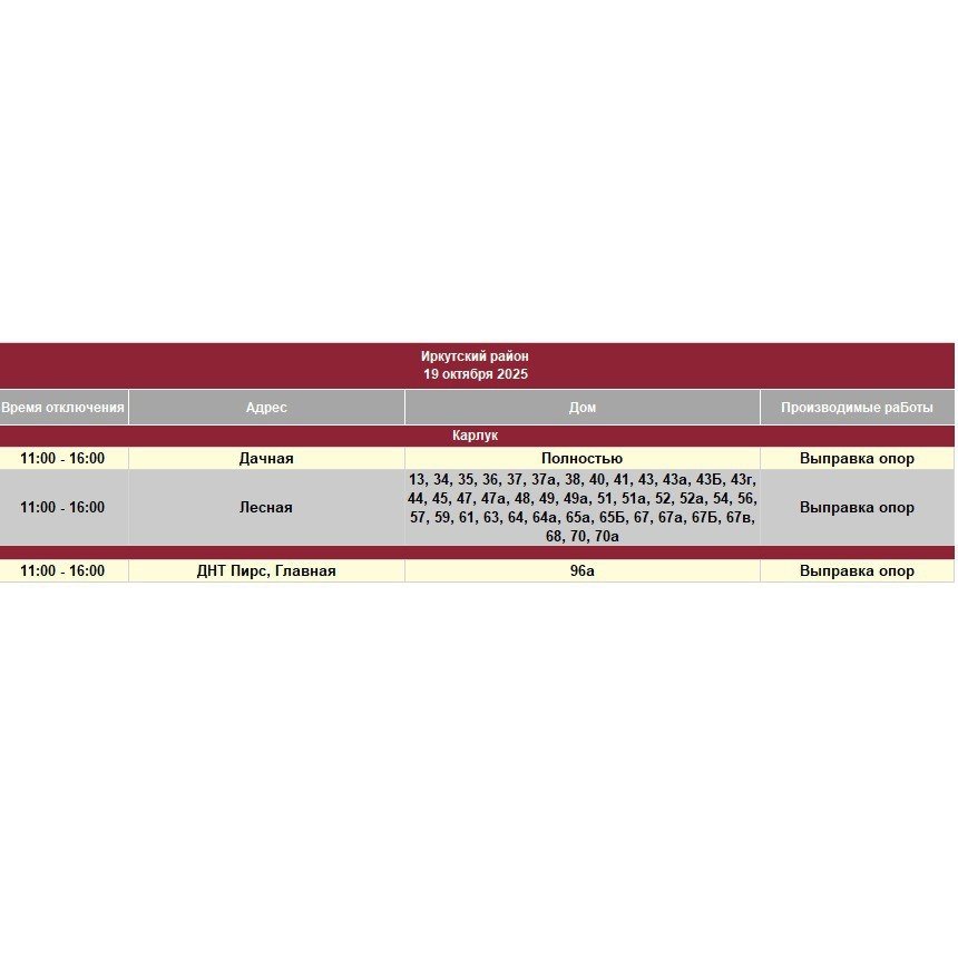 В тг-канале "СВЕТ38" (18+) сообщается, что специалисты проведут плановые работы на электросетях.