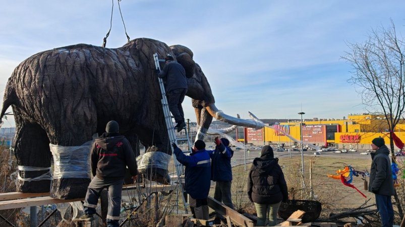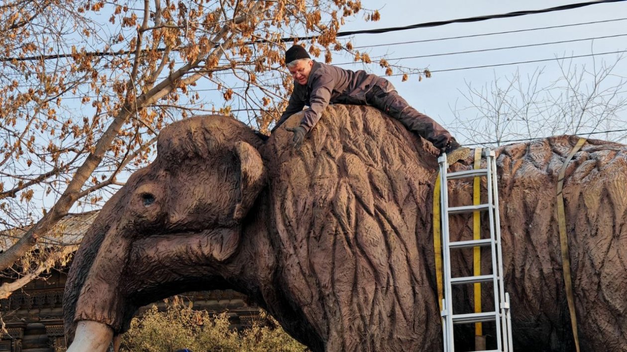 IrkutskMedia, 27 октября. Монументальную фигуру мамонта установили в Иркутске. Скульптура украсила территорию рядом с "Домом природы" Иркутской зоогалереи.