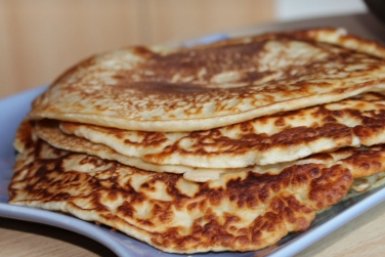 - Выпекайте блинчики на смазанной сковороде до лёгкой румяности, всего нужно 10-12 штук.