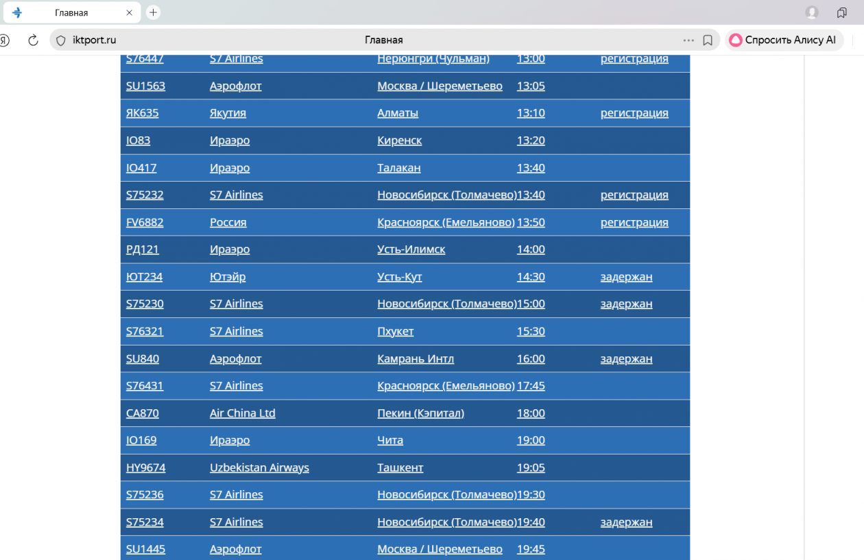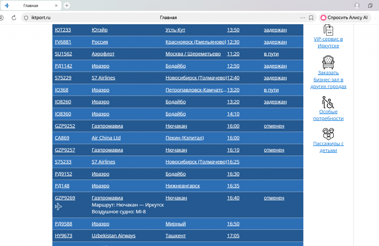 Также задерживается вылет шести рейсов в Москву, Новосибирск, Усть-Кут, Камрань Интл. Вылет трёх рейсов в Нючакан также был отменен.
