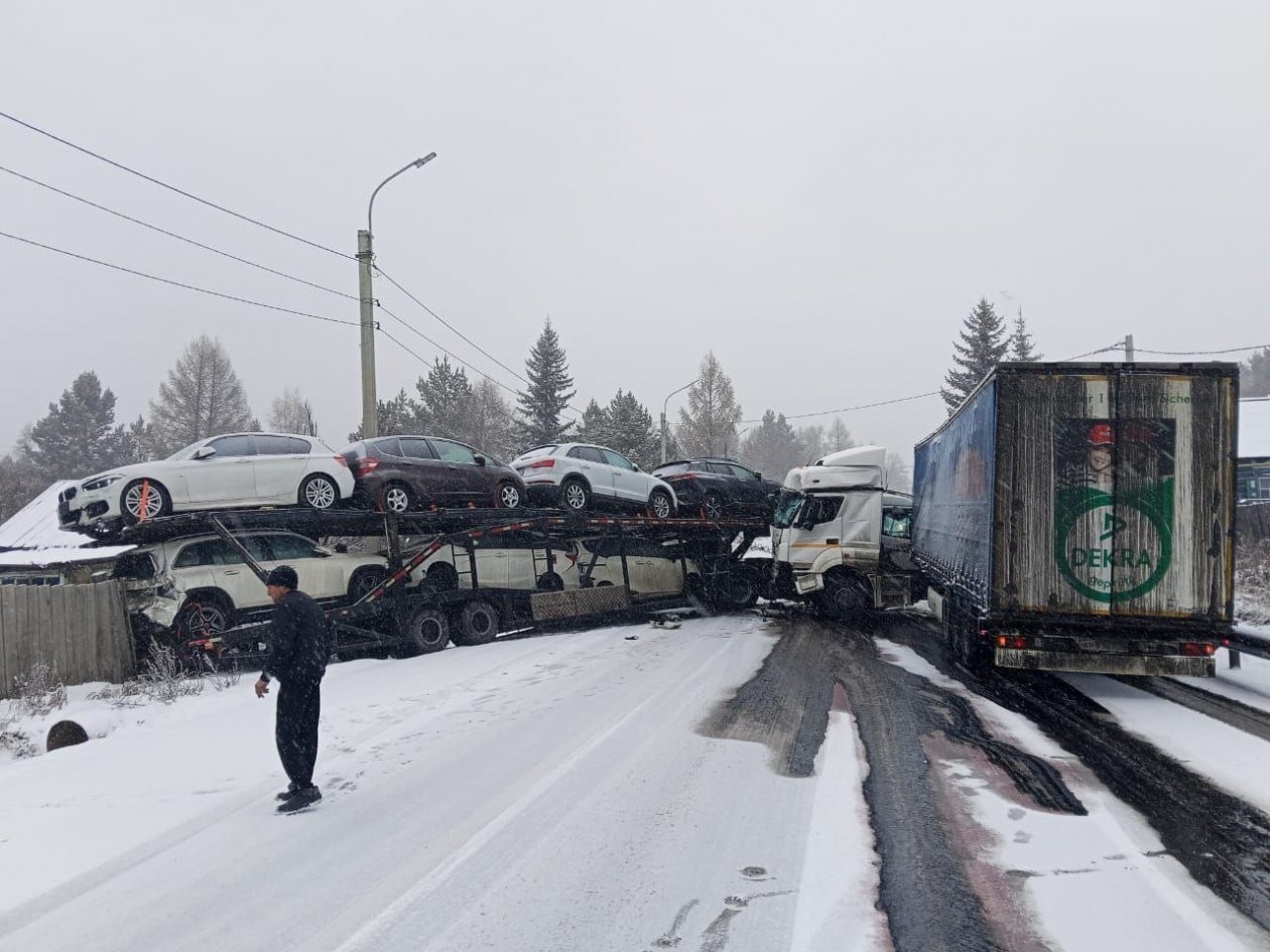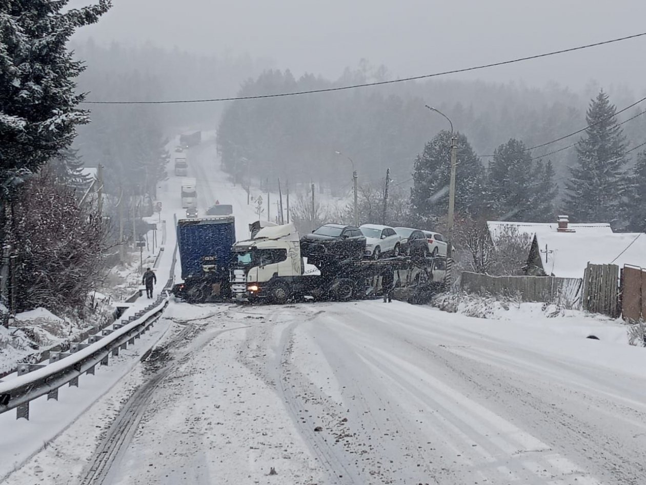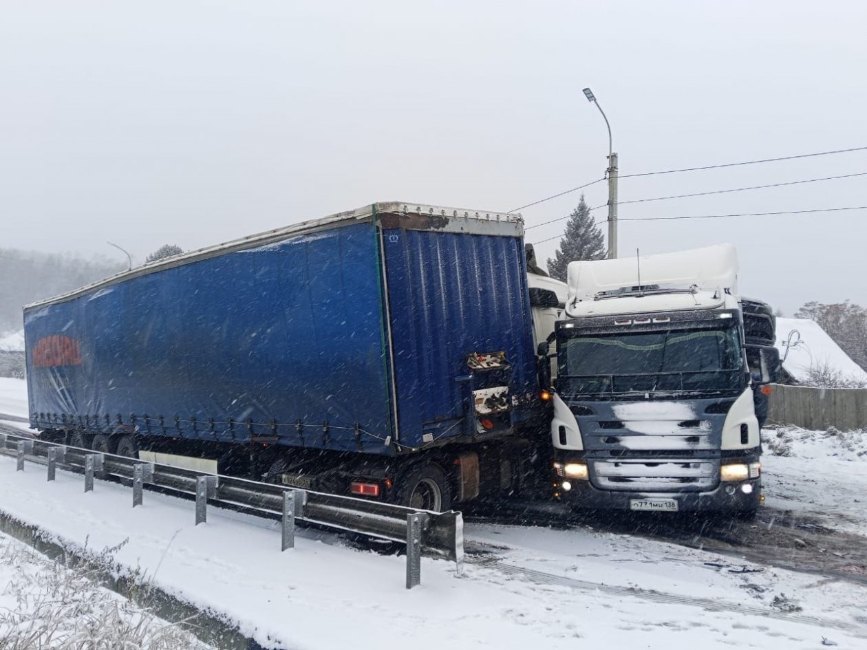 IrkutskMedia, 11 ноября. Движение транспорта ограничили с 48-го по 100-й км федеральной трассы Р-258 "Байкал" в Шлеховском районе. Из-за неблагоприятных погодных условий на дороге столкнулись два большегруза.