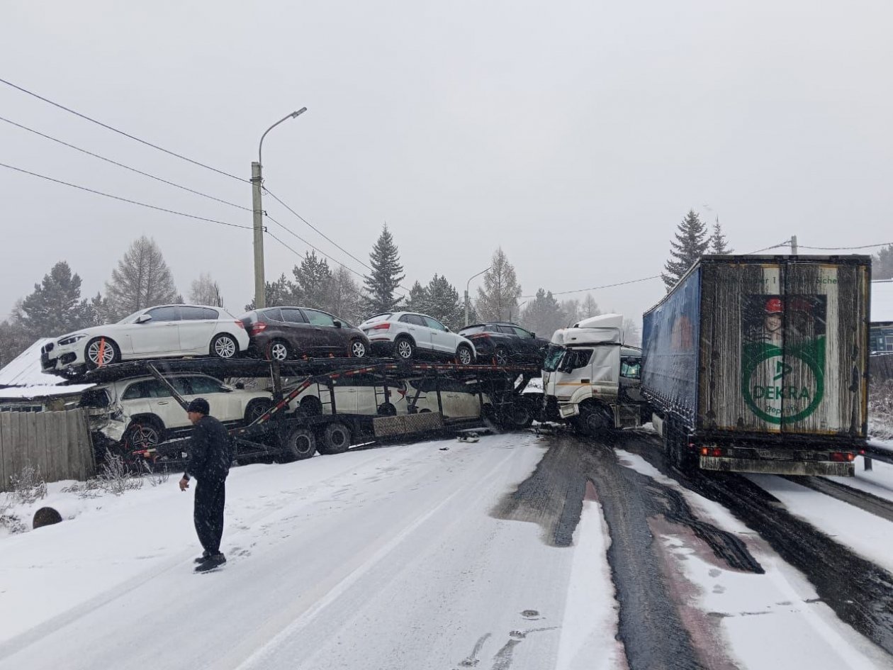 Груженый автовоз развернуло поперек трассы на Култукском тракте Информация о пострадавших и другие подробности дорожной аварии уточняются