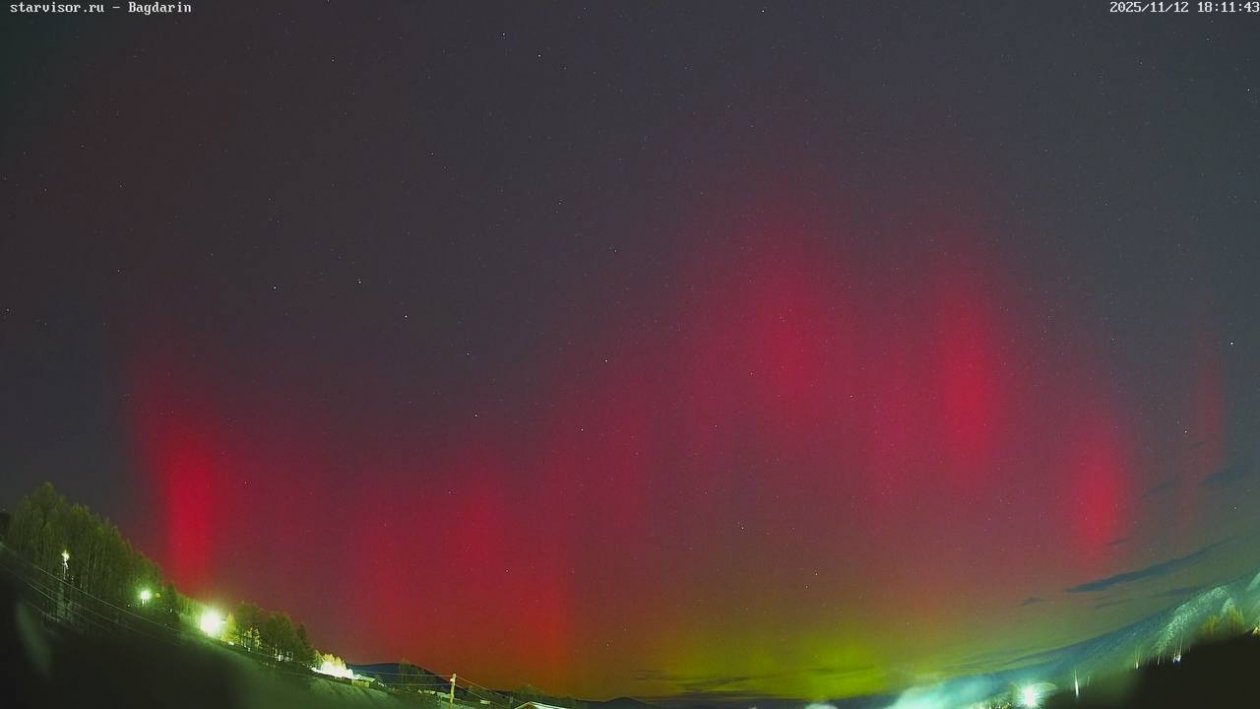 IrkutskMedia, 13 ноября. Вечером 12 ноября жители Иркутской области и республики Бурятия могли наблюдать яркое полярное сияние. Небо переливалось зелеными, розовыми и багровыми оттенками — невероятное природное явление вызвало восторг у очевидцев и астрофотографов.