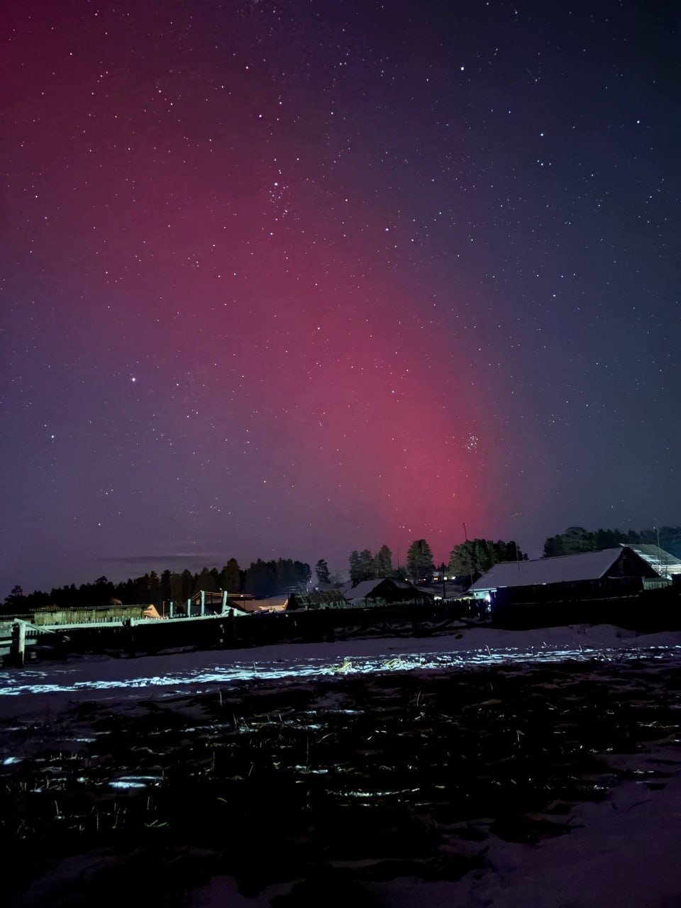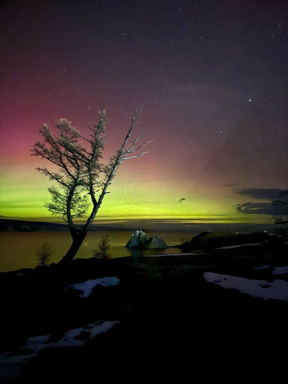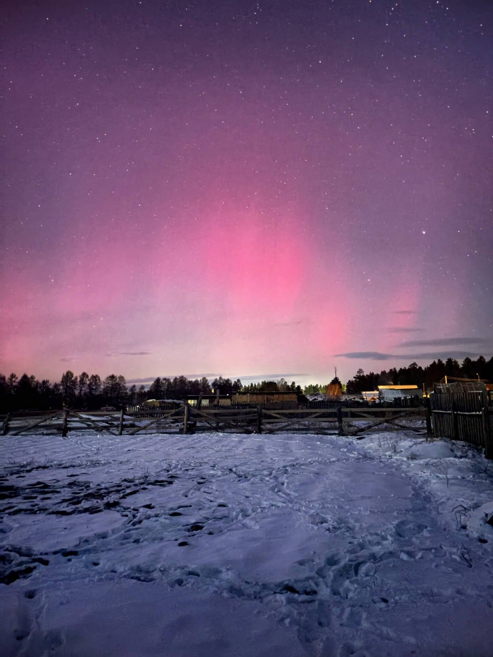 Снимками сияния поделился председатель Иркутского Регионального Астрономического Общества Павел Никифоров в тг-канале (18+) "Иркутский Астроном". Фотографии были сделаны в разных уголках Приангарья — на Ольхоне, в Боханском районе, селе Урик,а также в бурятских населенных пунктах Багдарин и Новокижингинск.