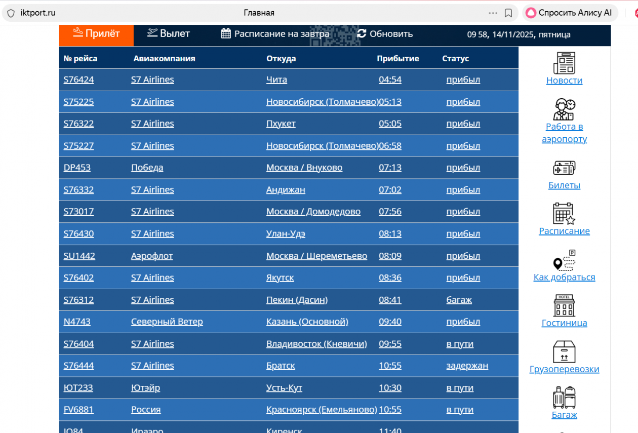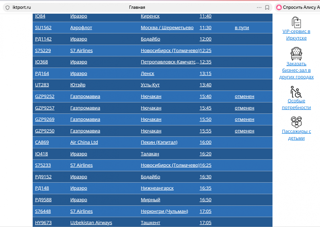 Также было отменено прибытие четырёх рейсов из Нючакана. Самолёт из Братска был задержан.