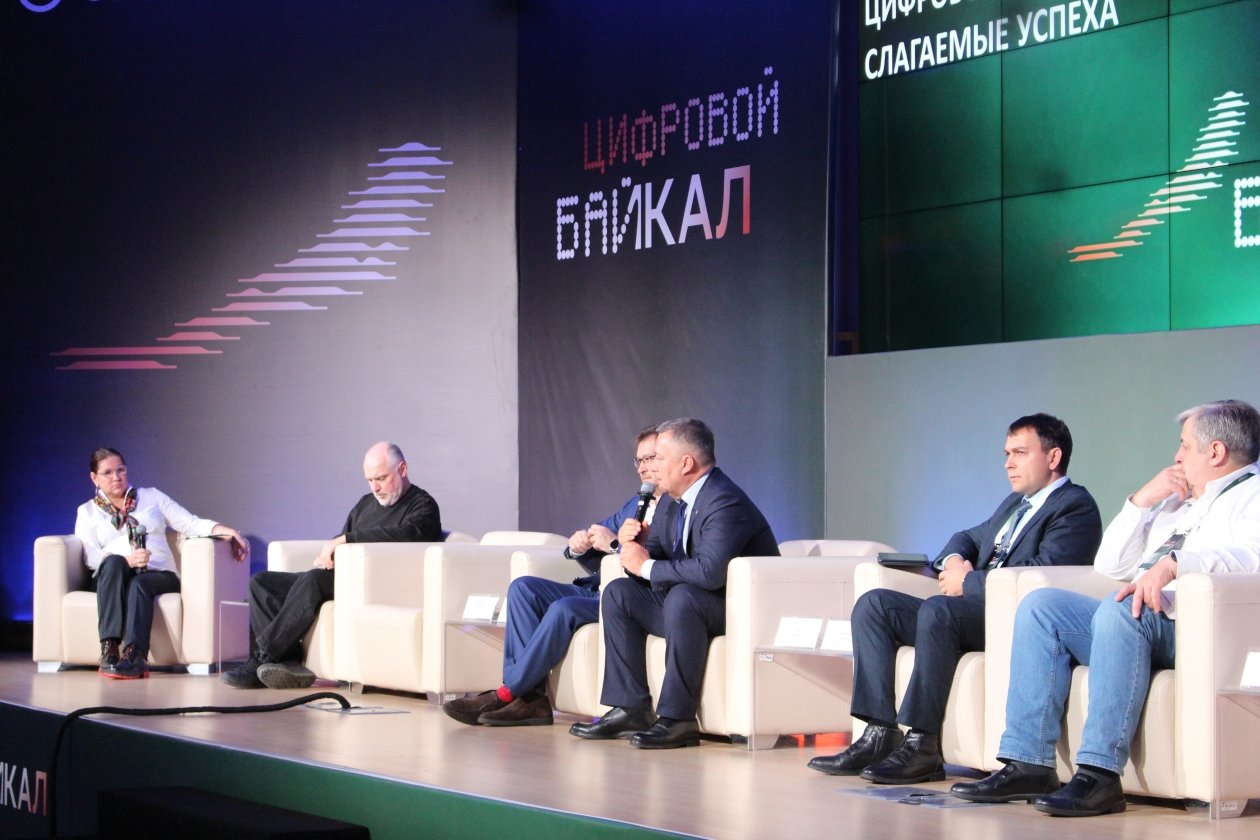Форум открыла панельная дискуссия "Цифровое развитие региона. Слагаемые успеха" с участием губернатора Иркутской области Игоря Кобзева и председателя Байкальского банка Сбера Рушана Сахбиева.