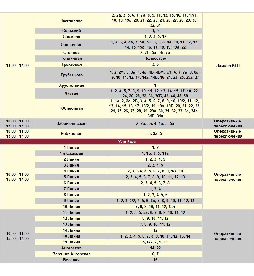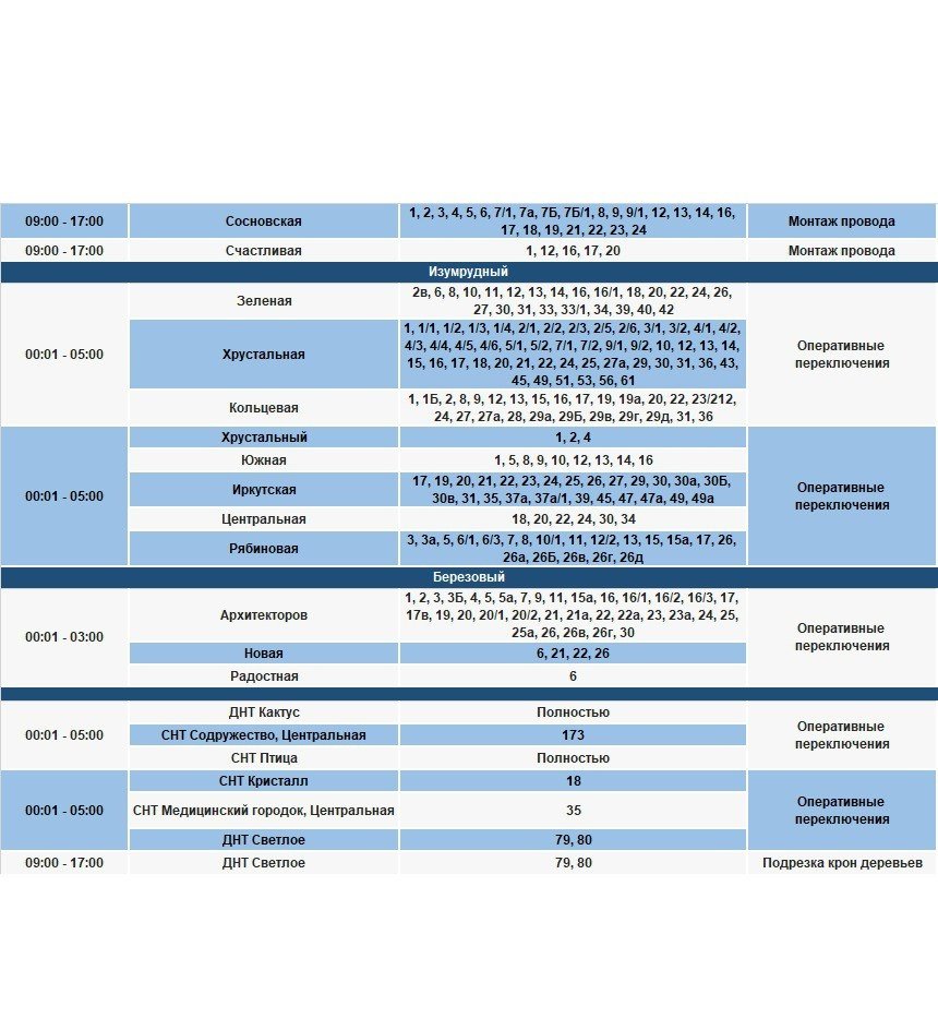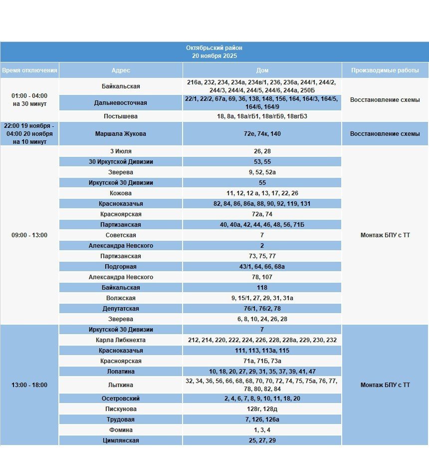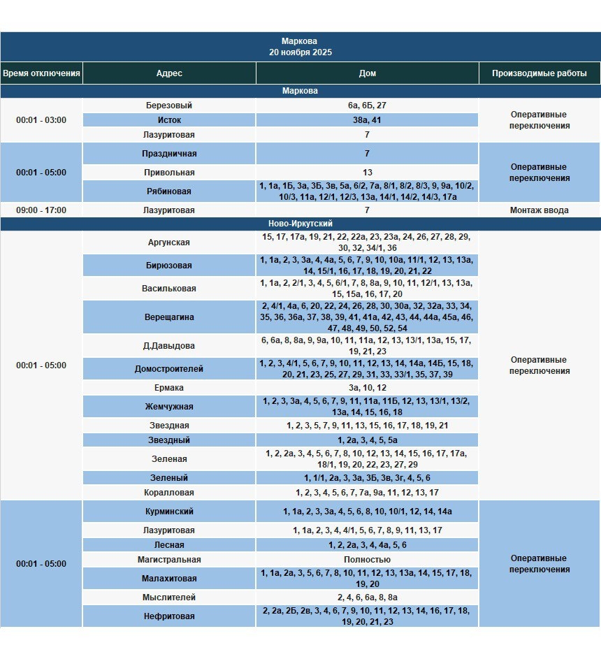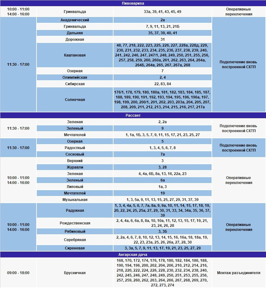 Под отключение попадут часть домов в Иркутске и районе, в Шелеховском районе, населенных пунктах по Байкальскому и Голоустненскому трактам.