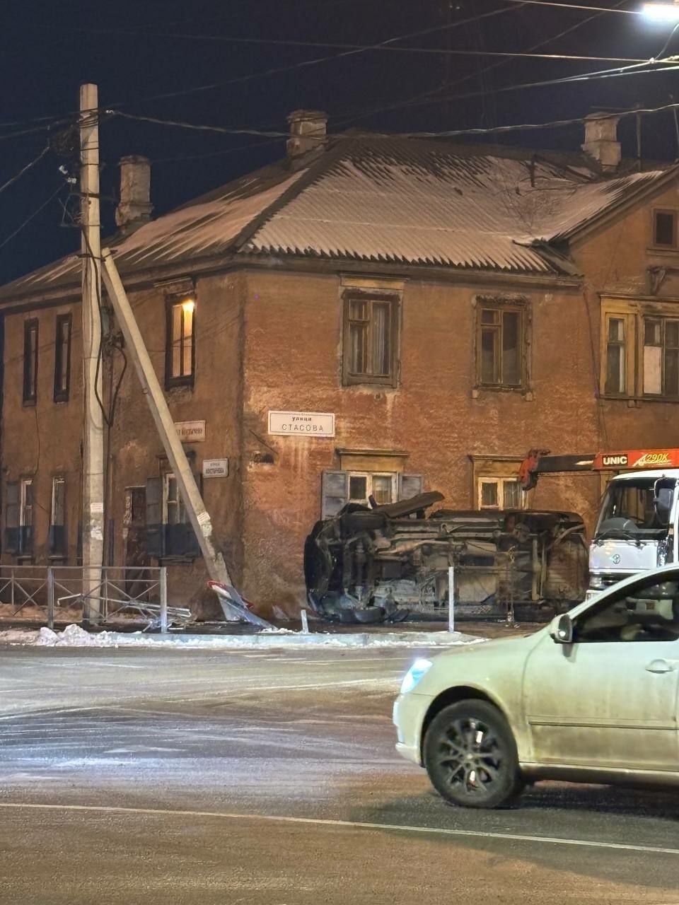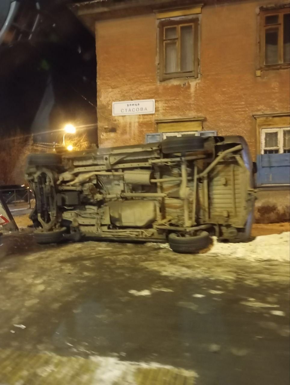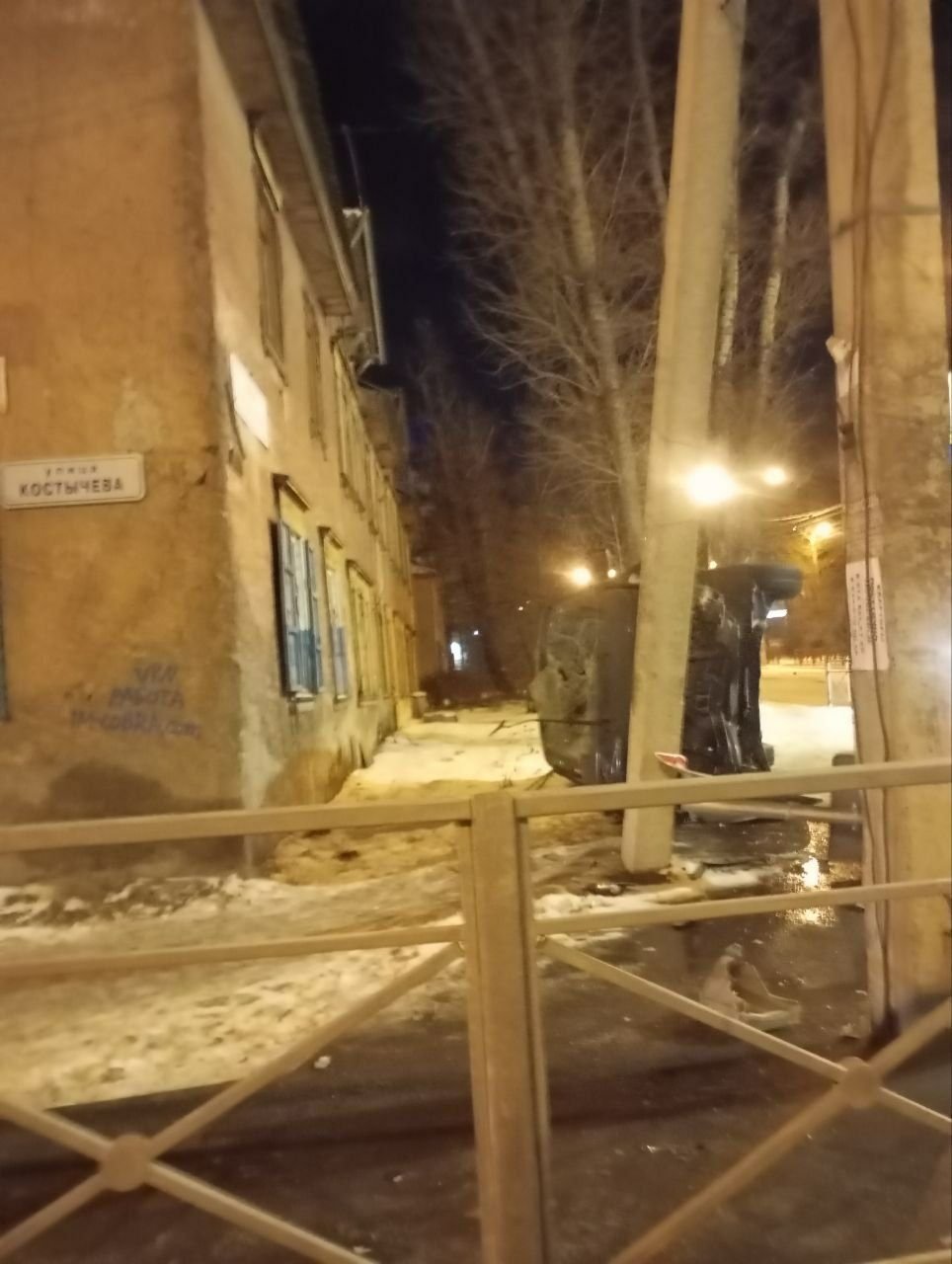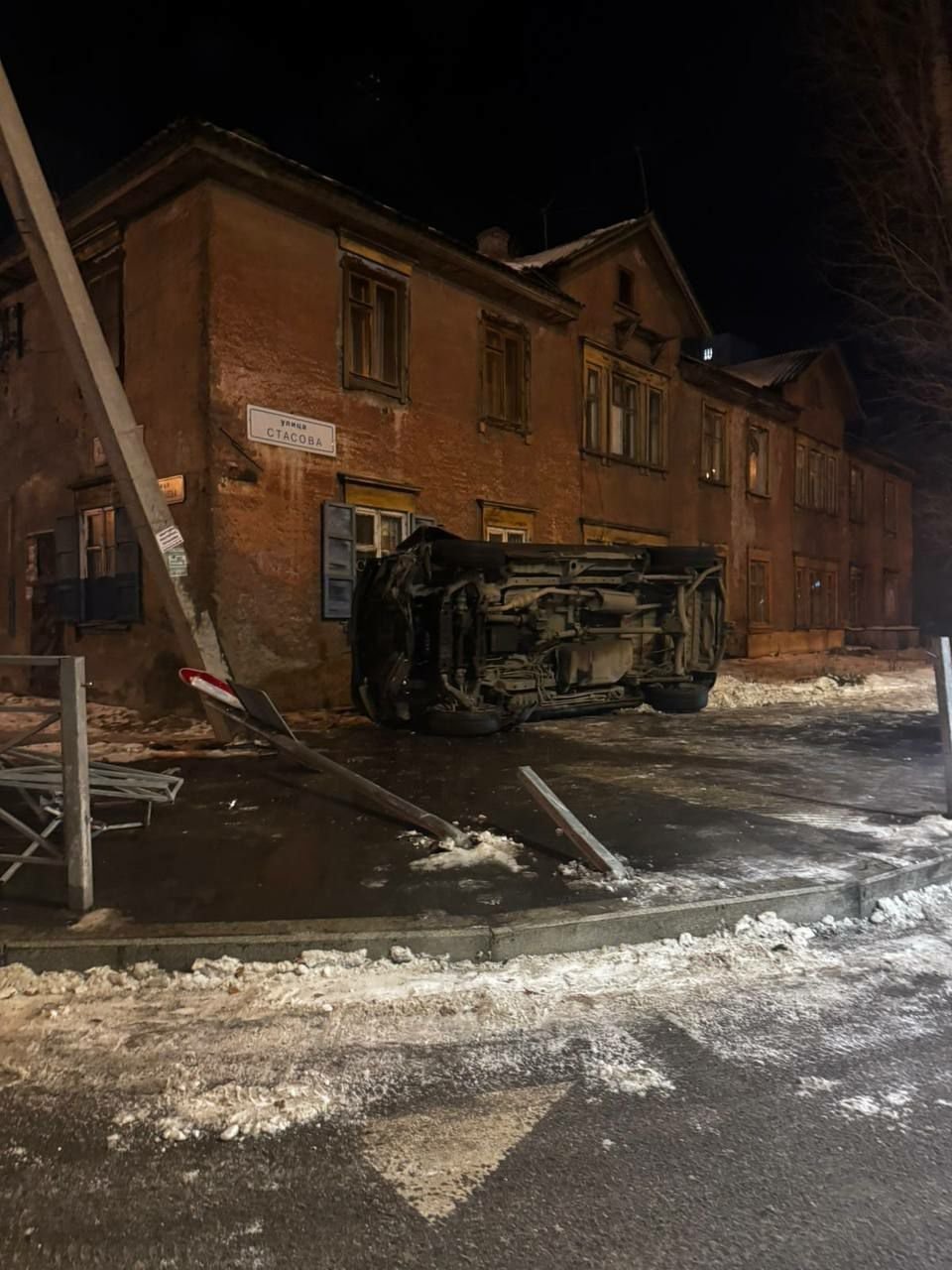 IrkutskMedia, 21 ноября. Сегодня в Иркутске на перекрёстке улиц Стасова и Костычева произошло ДТП с участием внедорожника. Как сообщают очевидцы, автомобиль вылетел на тротуар, снёс ограждение и дорожный знак. В результате аварии машина перевернулась на бок. Подробности дорожной аварии, а также информация о возможных пострадавших уточняются.