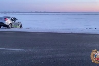 Кроме того, произошло ДТП с участием легковых автомобилей. На кадрах видно, что одна легковушка оказалась перевёрнутой на проезжей части, а вторая, по словам свидетелей, вылетела в кювет.