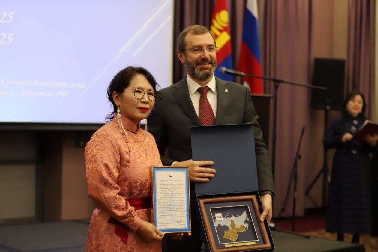 IrkutskMedia, 26 ноября. В Иркутске прошел торжественный прием по случаю 104-й годовщины установления дипломатических отношений между Российской Федерацией и Монголией и 101-й годовщины провозглашения Монгольской Народной Республики. Поздравления принимала Генеральный консул Монголии в Иркутске Батсух Ичинхорлоо.