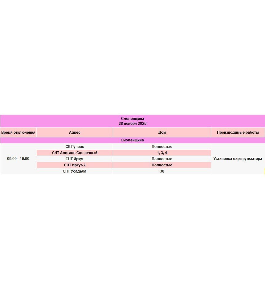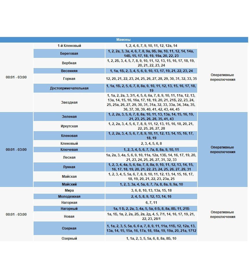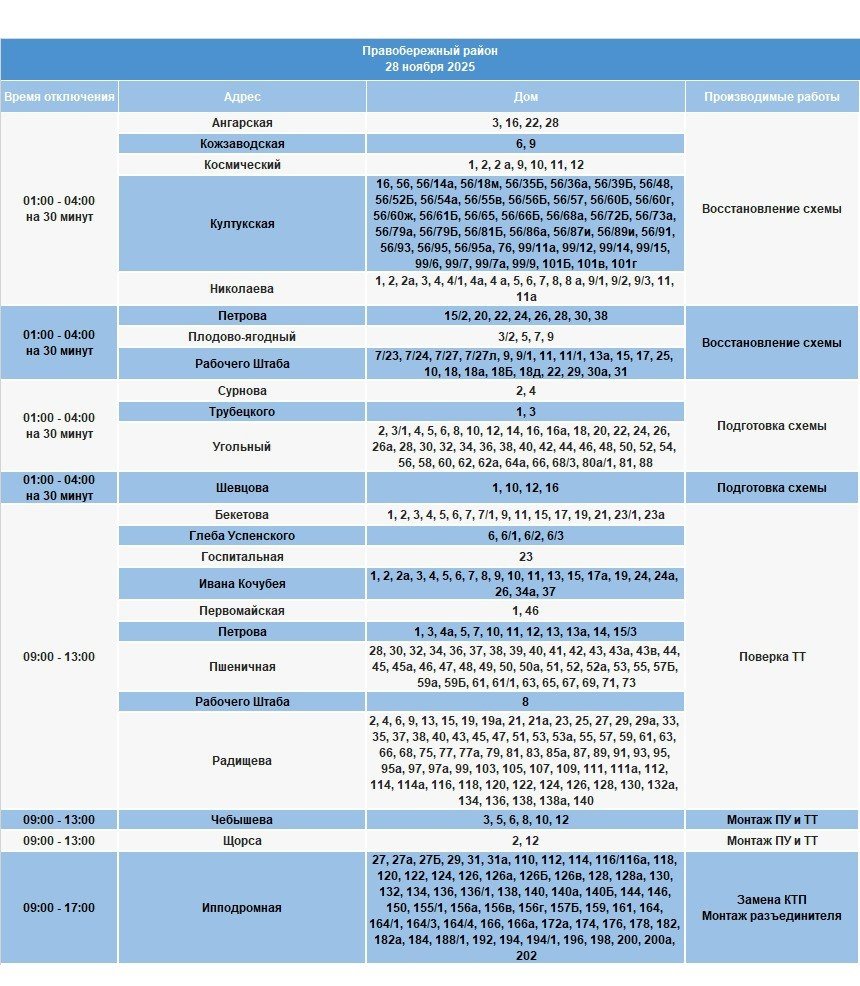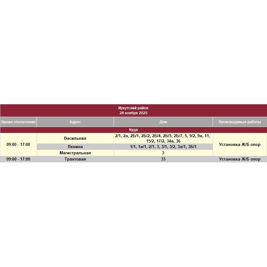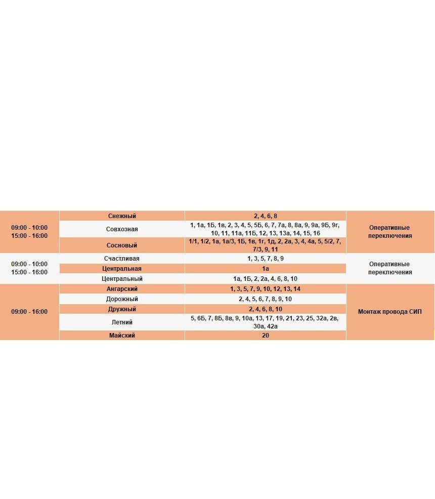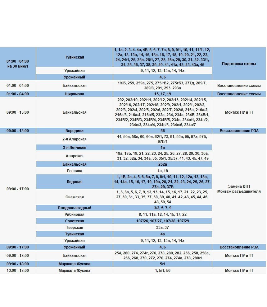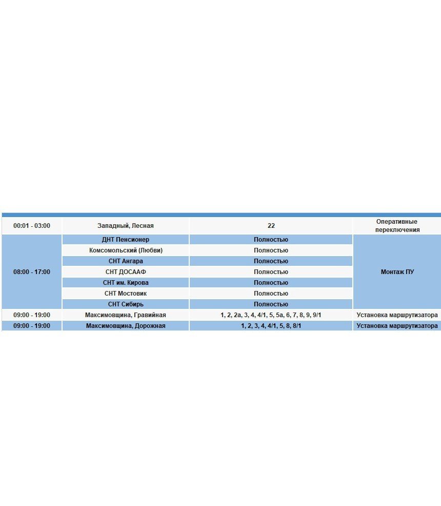 Под отключение попадут часть домов в Иркутске и районе, в Шелеховском районе, населенных пунктах по Байкальскому и Голоустненскому трактам, а также в Смоленщине, Маркова и Мельничной Пади.