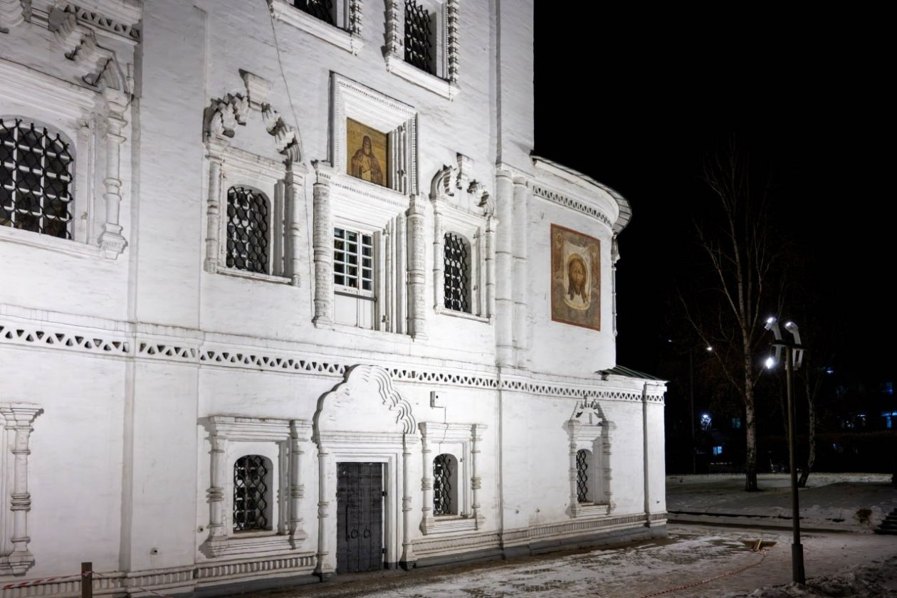 26 ноября подключили внешнюю заливающую архитектурную подсветку Спасского храма. На 16 опорах освещения рабочие разместили 37 светильников.