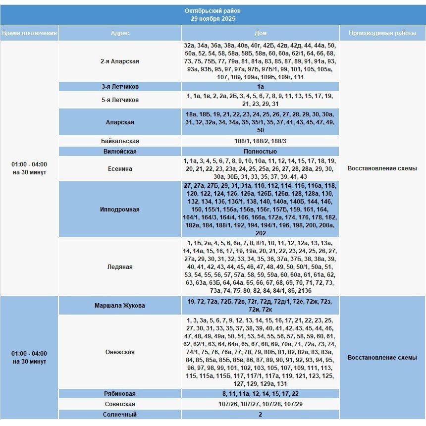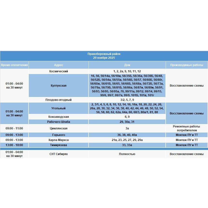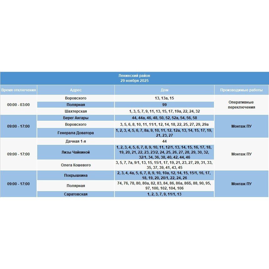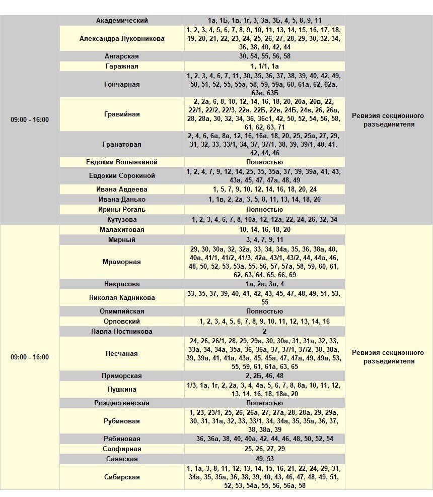 Под отключение попадут часть домов в Иркутске и районе, в Шелеховском районе, населенных пунктах по Байкальскому и Голоустненскому трактам.