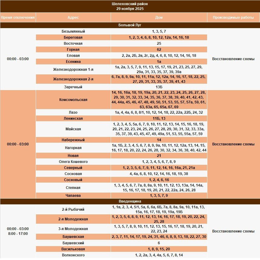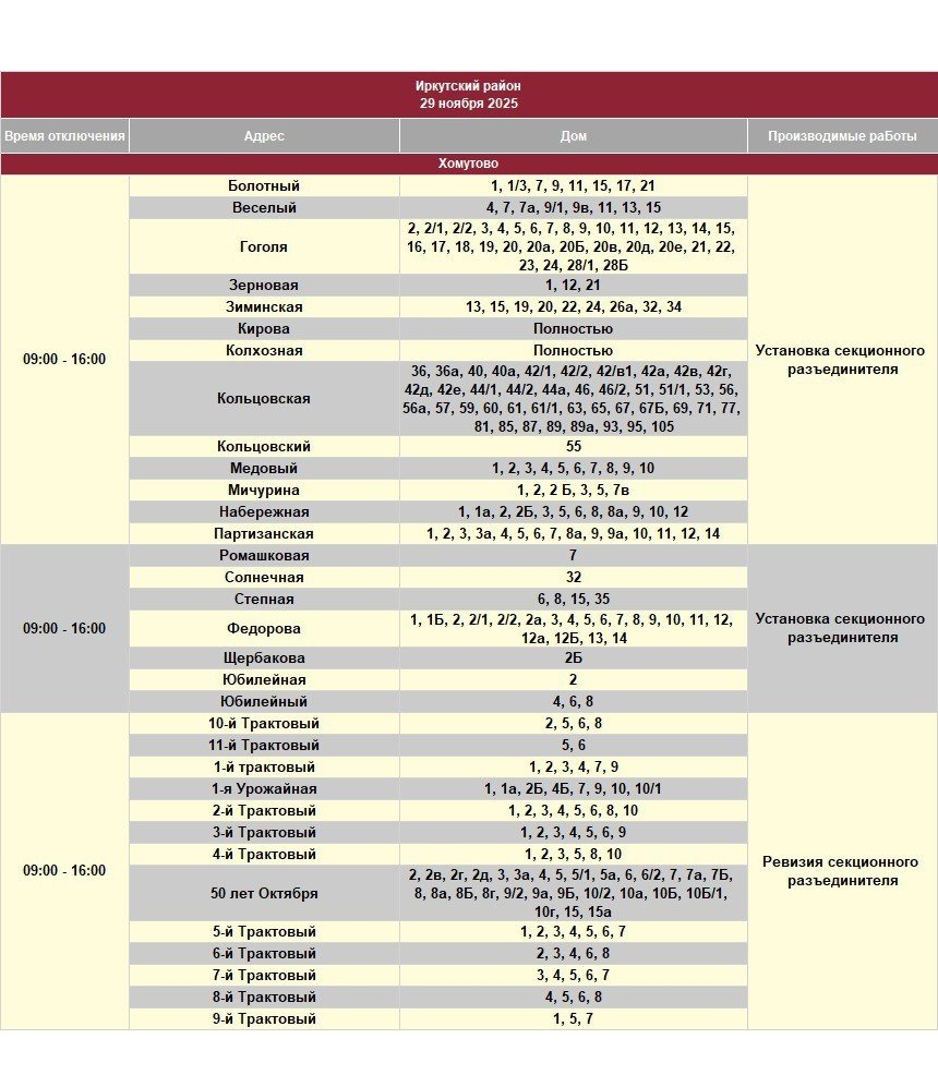 IrkutskMedia, 28 ноября. 28 ноября в некоторых населенных пунктах Иркутской области будет временно ограничено электроснабжение. В тг-канале (18+) "СВЕТ38" сообщается, что меры будут приняты в связи с проведением неотложных работ на электросетях.