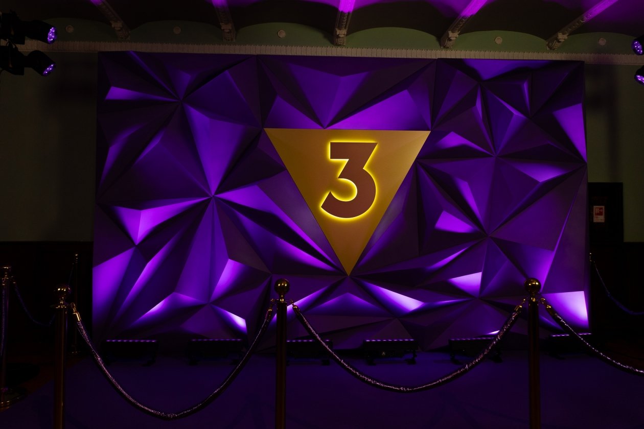 IrkutskMedia, 8 декабря. Телеканал ТВ-3 провел закрытую презентацию новых проектов в Москве. Мероприятие для приглашенных гостей было оформлено в коктейльном дресс-коде, а его центральным элементом стал фиолетовый пресс-волл с золотым тетраэдром — логотипом канала.