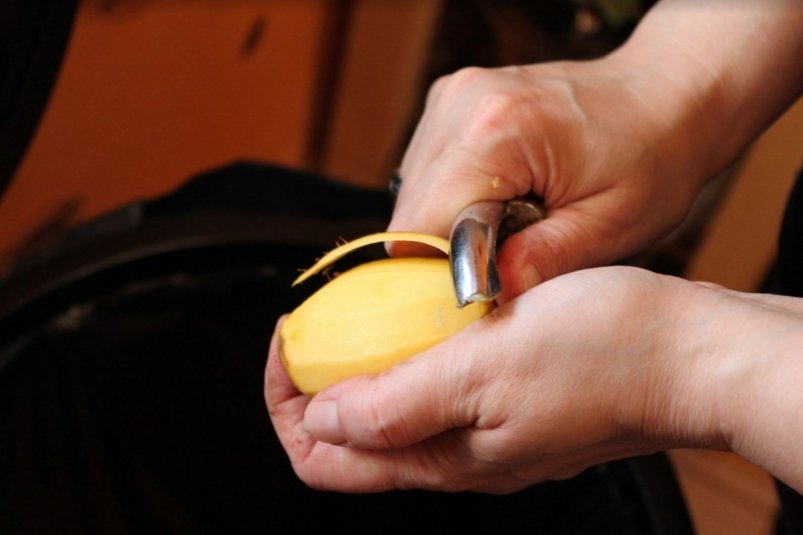 - Картофель очистите. Разрежьте каждую картофелину вдоль пополам.
