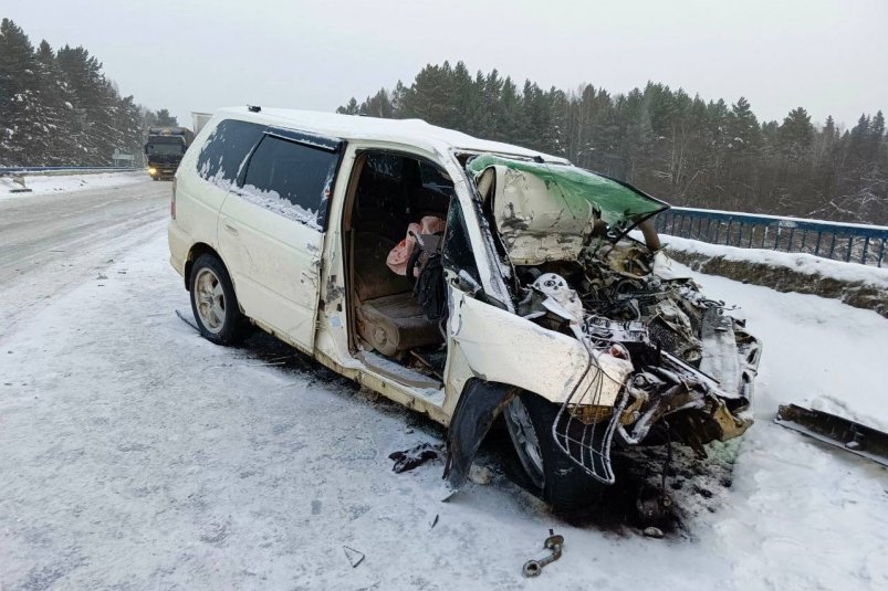 Как сообщили в Госавтоинспекции, около 10.00 на трассе вблизи села Бирюса 53-летний мужчина за рулем Honda Odyssey, двигавшийся со стороны Иркутска в направлении Красноярска, выехал на встречную полосу движения, где врезался в МАЗ, под управлением 47-летнего водителя. Вследствие случившегося, в заднюю часть грузовика въехал КАМАЗ, направлявшийся попутно с ним.