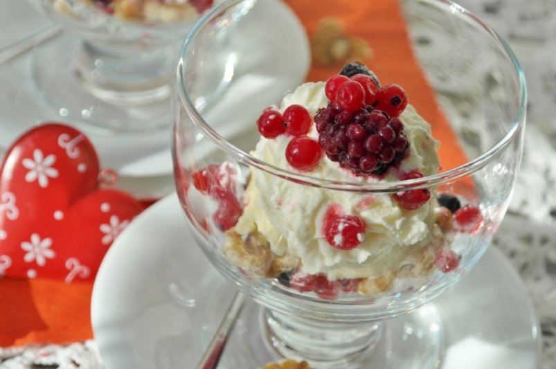 - Для идеальной текстуры желательно перемешать массу через 1,5-2 часа после начала заморозки, разбивая кристаллы льда.