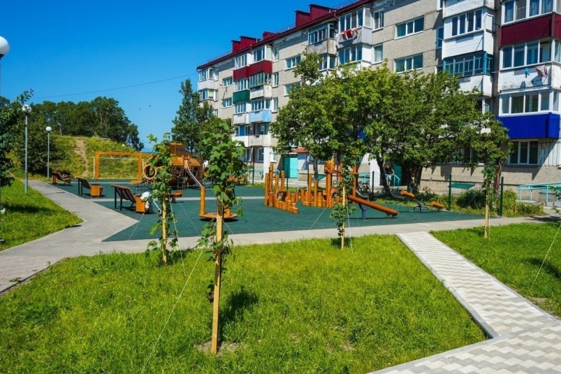 Федеральная программа "Дальневосточные дворы", ранее известная как "1000 дворов", позволила благоустроить в 2025 году 14 придомовых территорий в восьми населенных пунктах: Охе, Поронайске, Невельске, Холмске, Корсакове, Аниве, Долинске и Южно-Сахалинске.