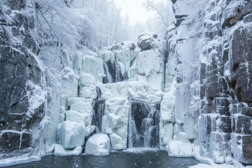 Один из самых зрелищных водопадов расположен на реке Большой Ук неподалеку от Нижнеудинска. Природный объект затерялся среди отвесных скал. В каждое из времен года водопад выглядит по-своему. Весной бурные потоки талой воды с ревом обрушиваются вниз, летом вода становится прозрачнее и насыщеннее, а осенью, когда в природной палитре начинают преобладать золотые оттенки, водопад утопает в пожелтевшей листве. В зимнее время морозы превращают бурлящую воду в ледяные изваяния, и лишь тихое журчание из-подо льда напоминает о непреодолимой мощи скованной стихии.