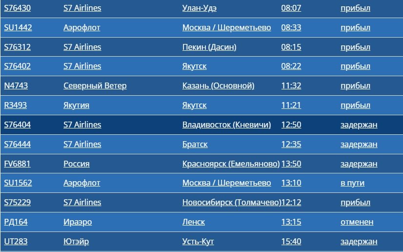 С опозданием в воздушную гавань приземлятся борта из Владивостока, Братска, Красноярска и Усть-Кута.