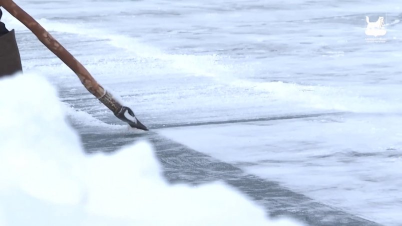 Традиционная иордань на заливе Якоби создается вручную, здесь формируют крещенский ледовый городок. Среди организаторов — мастер Виктор Князев, который каждый год трудится даже в сильные морозы.