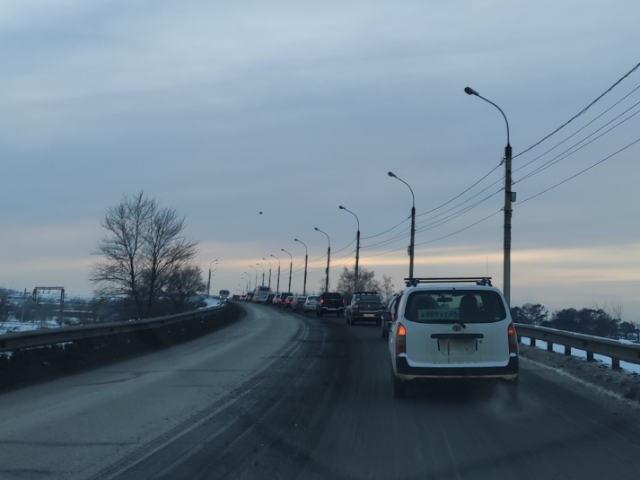 Крупная пробка образовалась из-за ДТП на Академическом мосту Иркутска