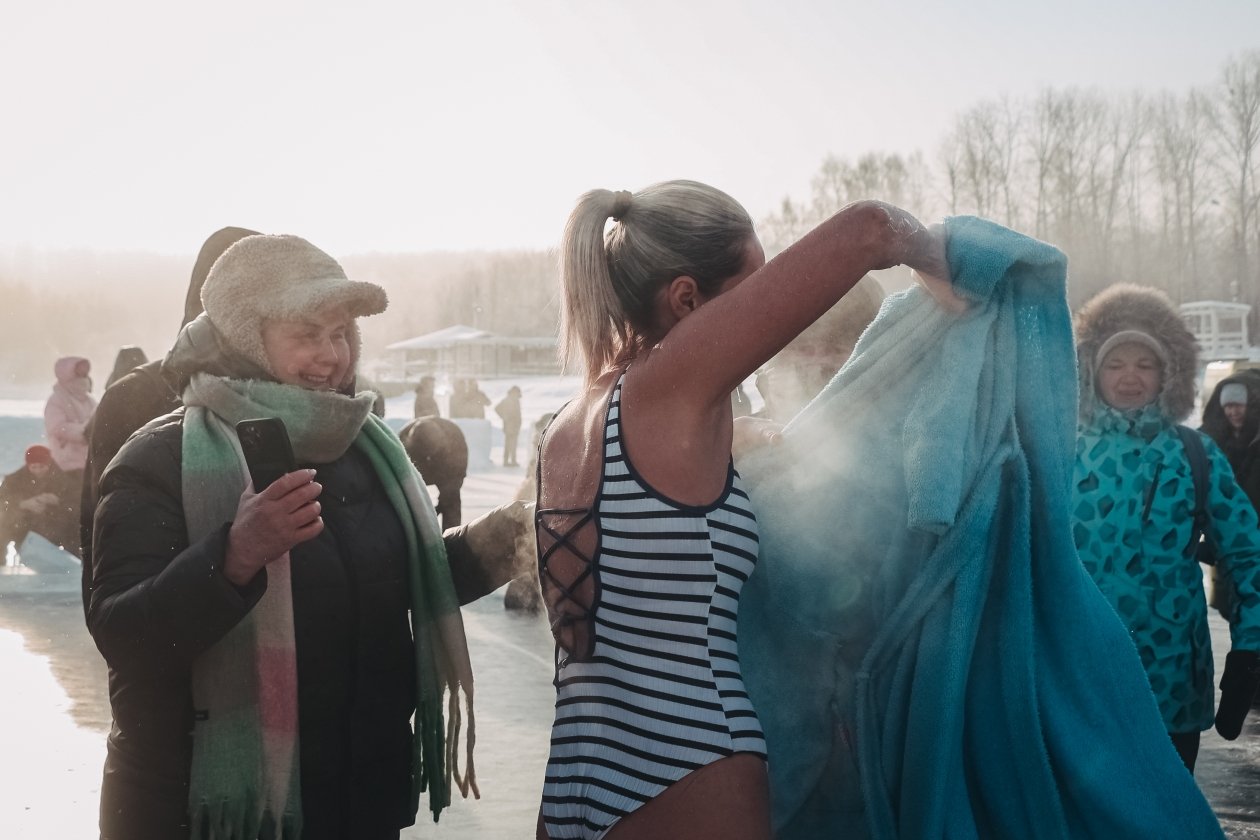 Настроение у всех горожан было праздничным и бодрым. Выходя из проруби, они с радостью рассказывали о впечатлениях и о том, почему решаются окунуться. Многие отмечали, что погружение в купель дарит невероятные ощущения — прилив силы, радости и умиротворения. Кадры с места события — в нашем фоторепортаже.