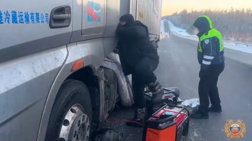 Экипаж ДПС заметил стоящий на проезжей части грузовик FAW J7 и остановился для выяснения обстоятельств. Водитель не владел русским языком, поэтому общение с инспекторами велось с помощью мобильного приложения-переводчика. Мужчина сообщил, что направлялся в Красноярск, однако автомобиль заглох из-за низких температур и не заводился.