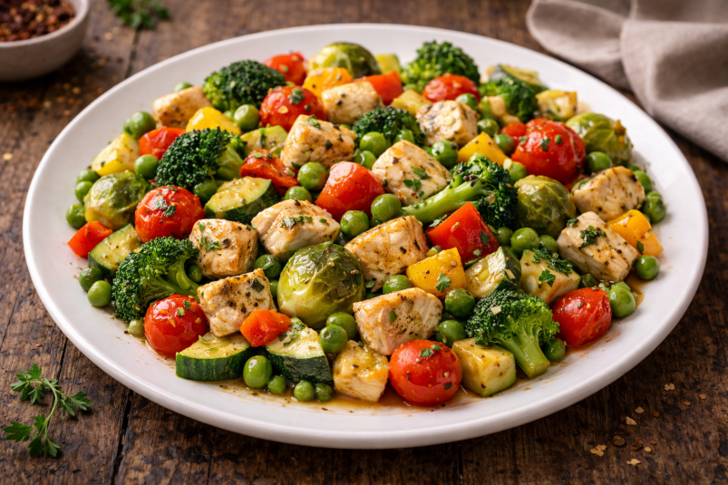 Многие хозяйки стремятся к тому чтобы готовить для своей семьи вкусные и полезные блюда. Курица, запеченная с овощами как раз одно из таких. Приготовить его не сложно. Рецепт не требует множества дорогих ингридиентов. Получившеяся блюдо не только полензное, но и выглялит красиво за счёт обилия разных овощей.