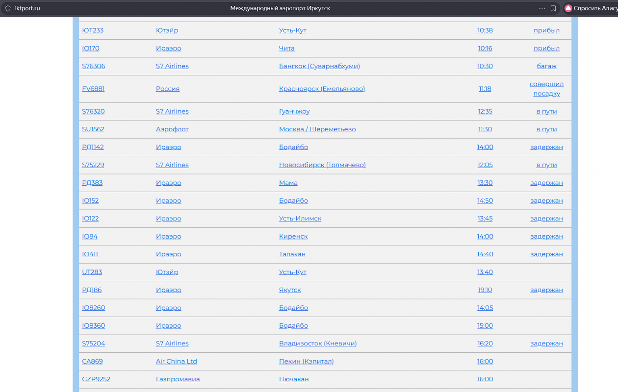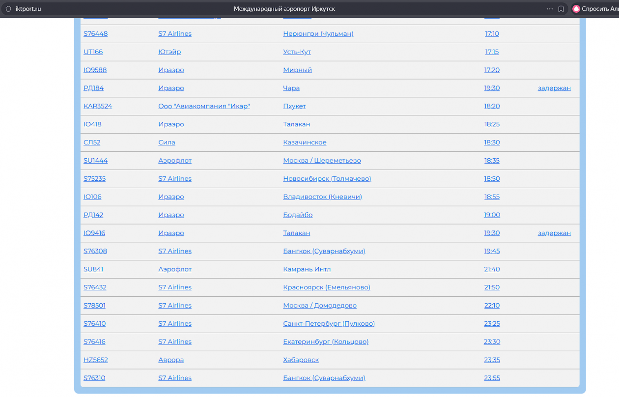 Задержка вылета. Фото: Онлайн-табло аэропорта Иркутска