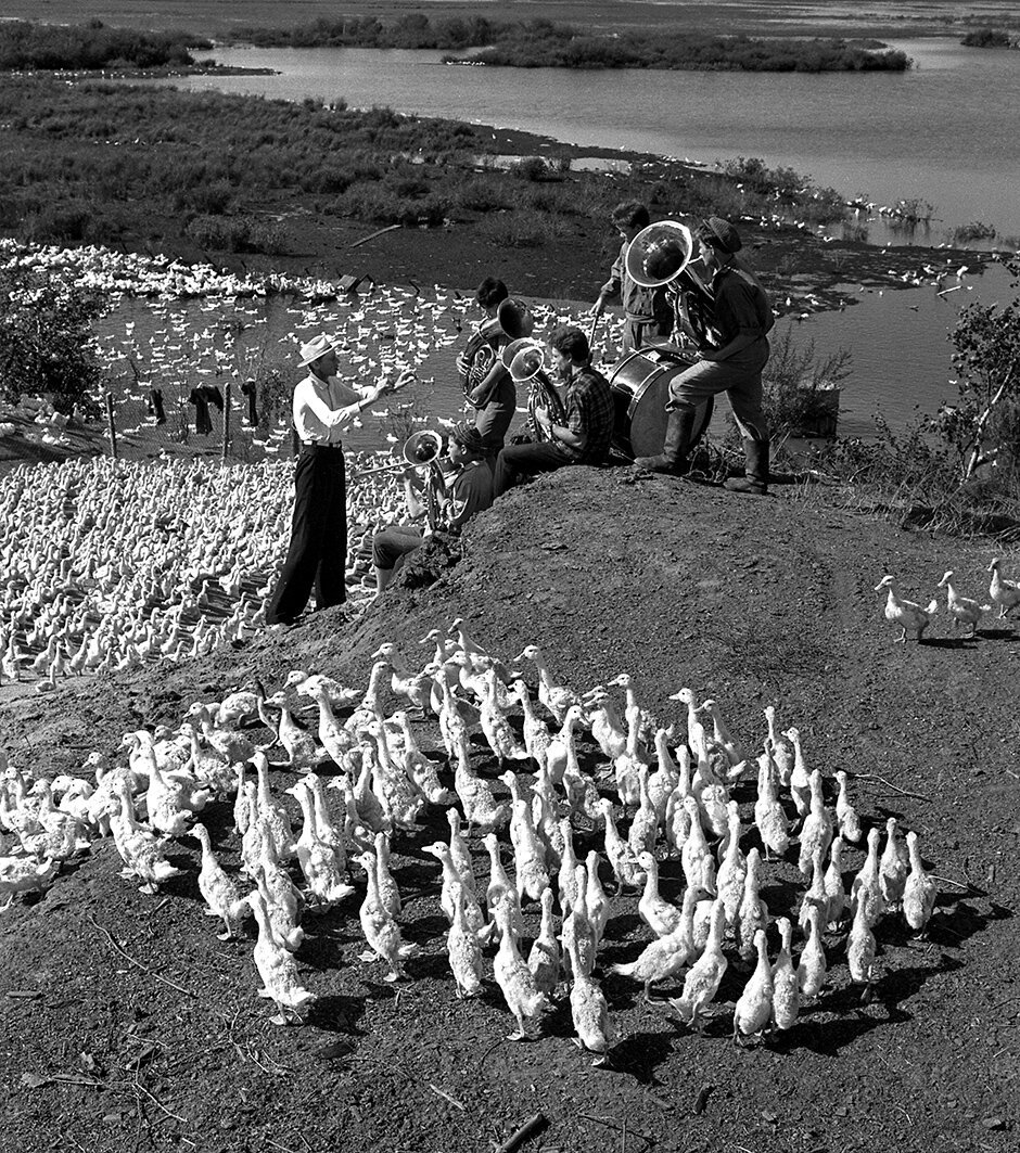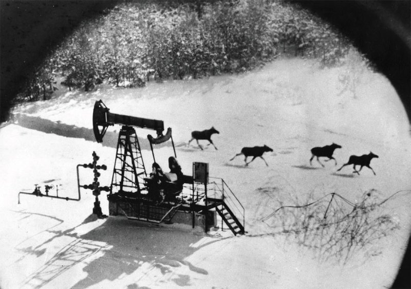 Например, при работе на Байкал-Амурской магистрали фотограф обязательно включал в композицию агитационные плакаты, где фигурировала надпись "БАМ" и рельсы. Также ему удалось договориться с рабочими об условных знаках, после которых они принимали определенное положение, чтобы придать фото дополнительную выразительность.