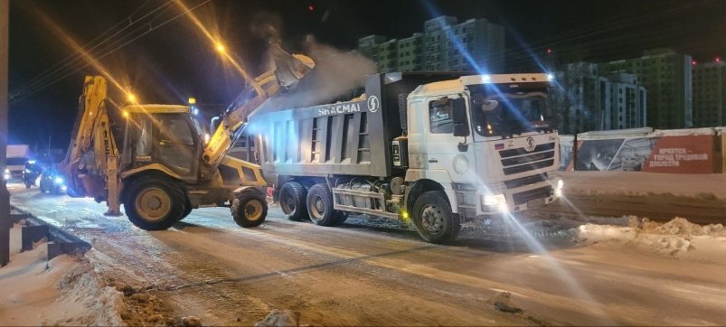 Подрядчики ночью погрузили и вывезли снег с участков улиц Ширямова, Рабочая, Франк-Каменецкого, Октябрьской Революции, Богдана Хмельницкого, Карла Либкнехта, Зверева, Нижняя Набережная, Декабрьских Событий, Каландаришвили, Марата, Напольная, Маяковского, Трактовая, Лермонтова (Студгородок), Баумана, Шпачека, Ползунова, 2-я Железнодорожная.