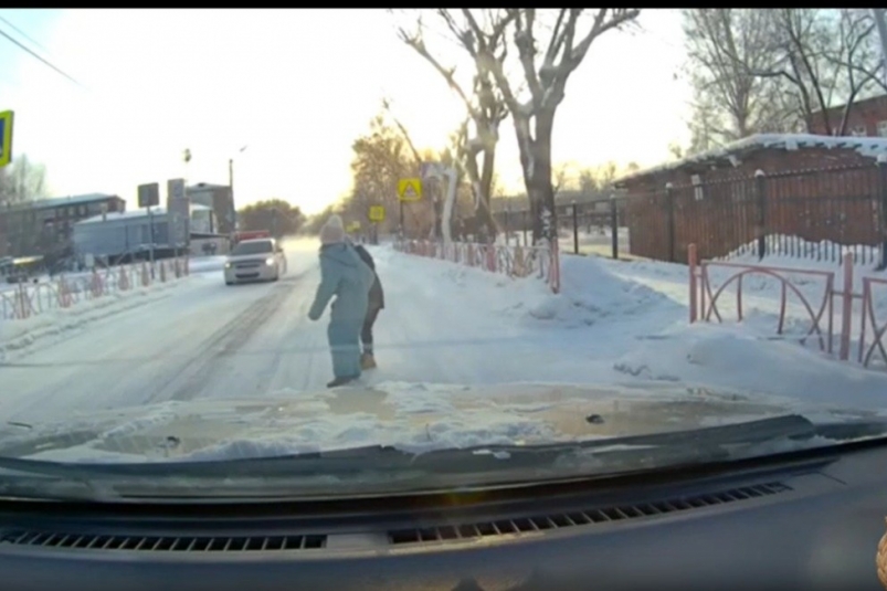 IrkutskMedia, 4 февраля. 31 января в соцсетях появилась запись с видеорегистратора, на которой был запечтален опасный инцидент на улице Толбухина в Усолье-Сибирском. На кадрах видно, как водитель иномарки на скорости проезжает пешеходный переход, по которому в этот момент дорогу переходят двое детей.