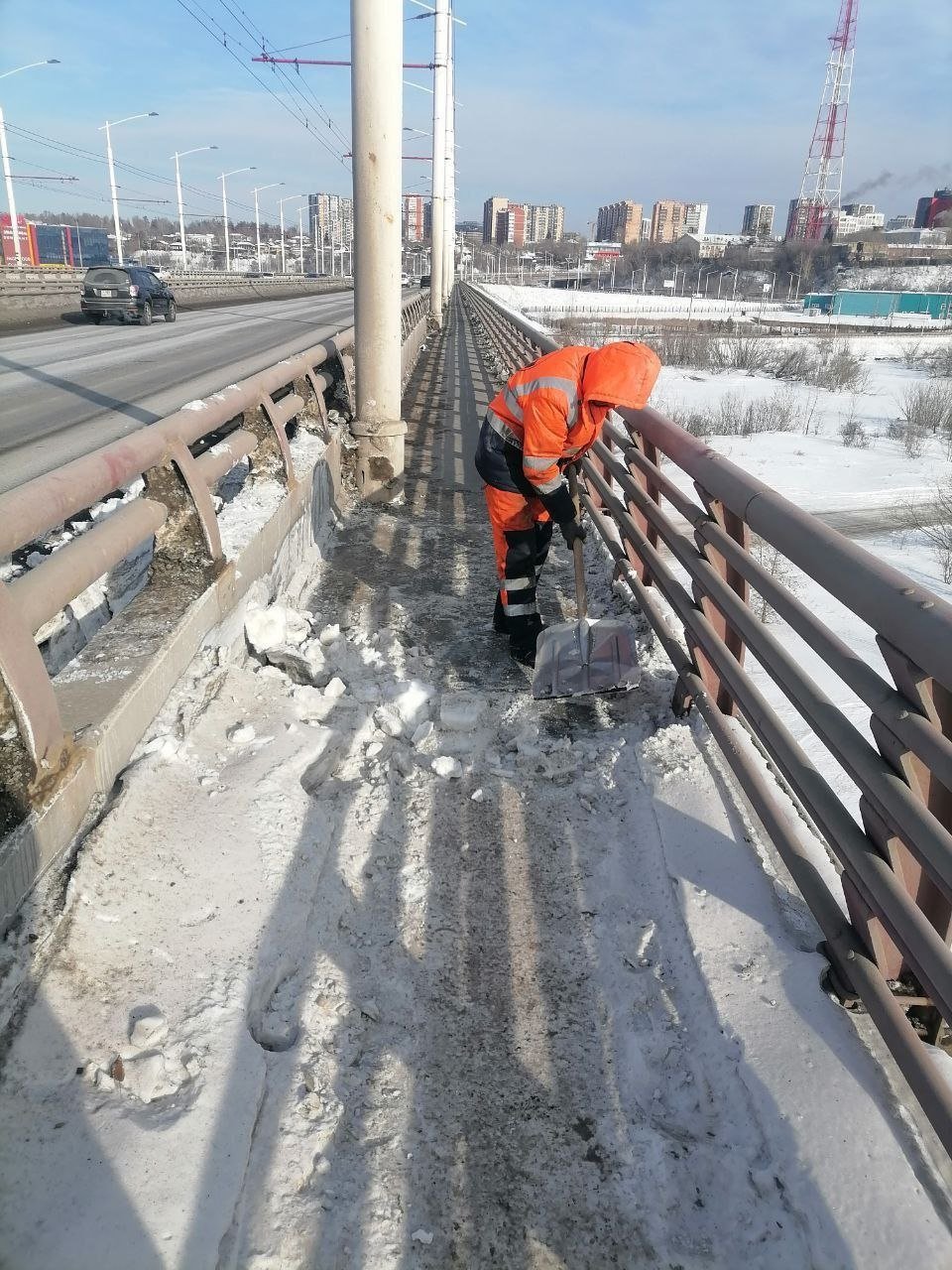 Силами МУП "Служба эксплуатации мостов" и подрядных организаций снег вывезли с моста между улицами Первомайская и 3-я Огородная, путепровода на Сергеева, а также на съезде с Иннокентьевского моста.