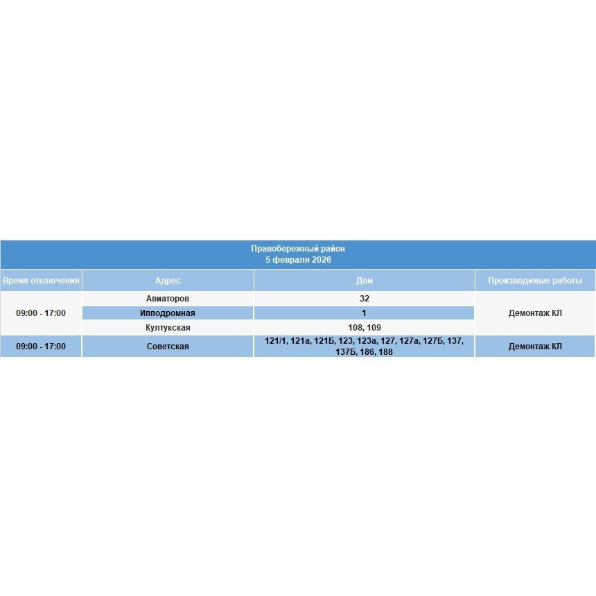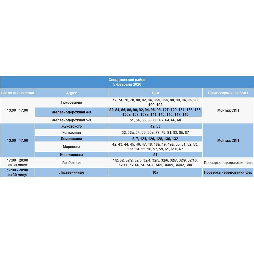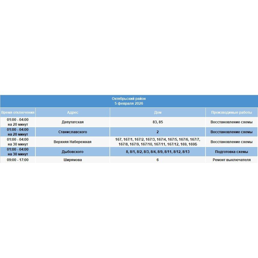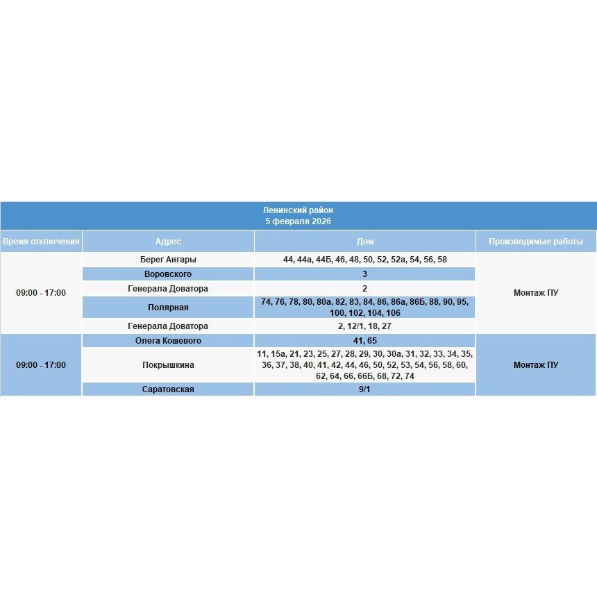 IrkutskMedia, 4 февраля. Плановое отключение электричества состоится завтра, 5 февраля, в Ленинском, Октябрьском, Правобережном и Свердловском округах. Как уточняют энергетики, на сетях будут проведены ремонтные работы.