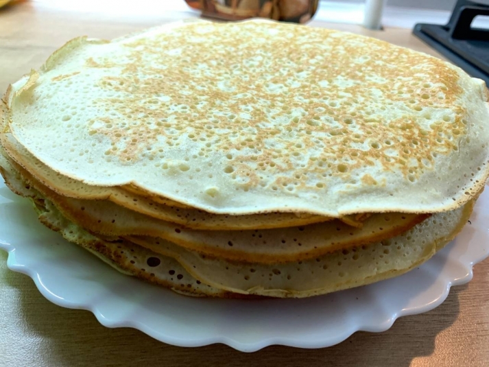 - Сложите остывшие блины стопкой, при необходимости прокладывая пергаментом;