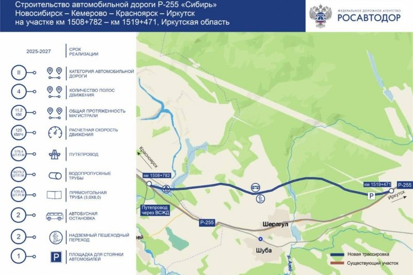 Реализация проекта также выведет транзитный поток за пределы жилой застройки Шерагула, что повысит безопасность, а также сократит время в пути между административными центрами двух регионов — Красноярского края и Иркутской области.