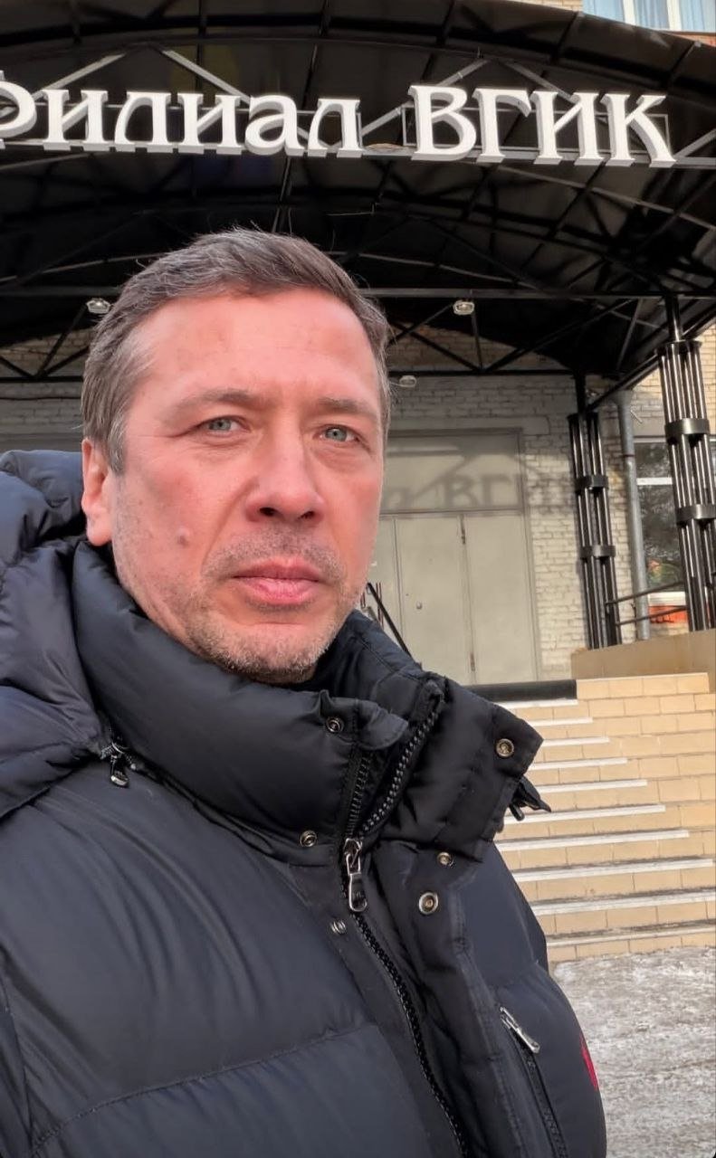 Андрей Мерзликин на фоне иркутского ВГИКа. Фото: Социальные сети Андрея Мерзликина