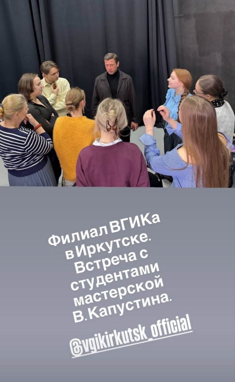 IrkutskMedia, 11 февраля. Заслуженный артист РФ, актер театра и кино, кинорежиссер Андрей Мерзликин провёл творческую встречу студентами Иркутского филиала “ВГИК” (мастерская Владимира Капустина).