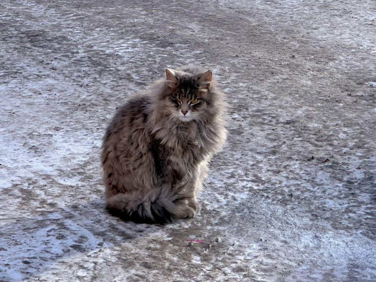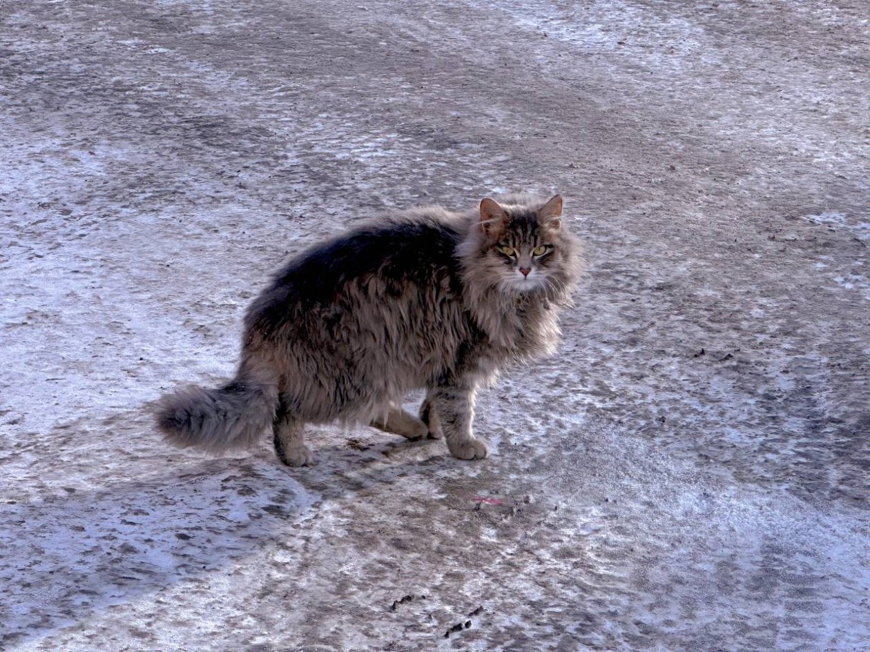 На территории нашего корреспондента приветливо встретил охранник Николай Алексеевич. Он работает здесь уже 13 лет, и именно на его глазах зародилась эта дружба. Пес Дружок живет на территории автостоянки очень давно — еще до начала работы Николая Алексеевича. Кошечка — Маня — была одним из нескольких котят местной кошки. Красивая, пушистая, словно серое облако, но недоверчивая. К тем, кого знает, подойти может, посидеть рядом, но на руки не дается и не ластится. Братья и сестры у нее были поласковее, да только пропали однажды — работники подозревают в этом собак с соседней территории.