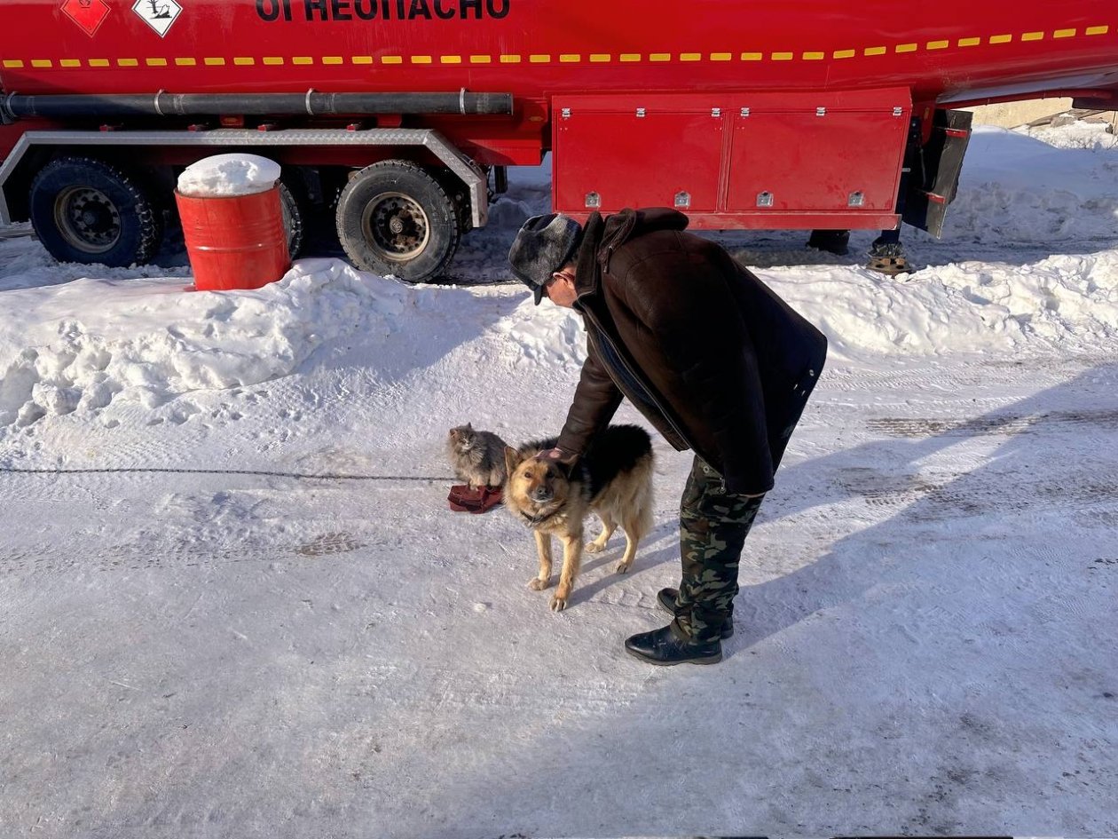 "Они втроем в эту будку и залазят, кто вперед. Едят тоже рядышком. Пулька молодец: и у мамы поест, и сюда прибежит, везде успевает. Кошка когда с Дружком ест, когда отдельно. Но дружно живут. Как морозы ударили, Пуля на полном ходу в будку влетает — там сразу переполох. Но скоро все утихает. Никто никого не выгоняет. Греются друг об друга, от холода спасаются. Втроем-то оно теплее", — продолжает Николай Алексеевич.